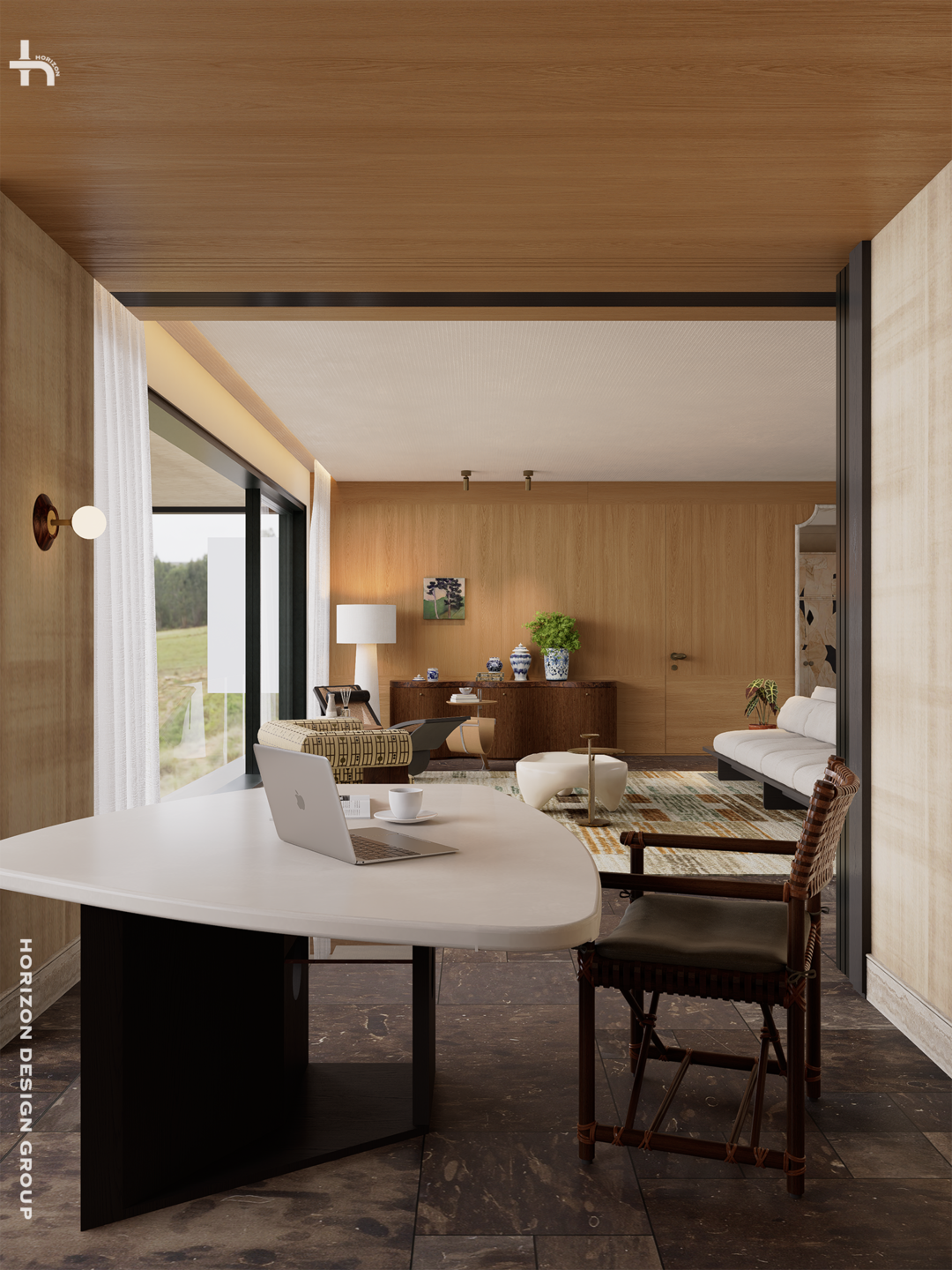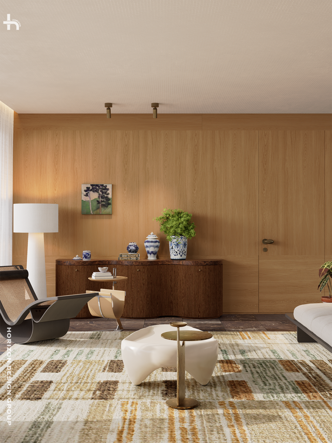 我们期望,构建一个极具「老钱」潜质的客厅空间骨架:以人为中心、拥抱自然、灵活多变、艺术浸润、并强调品质与舒适。
