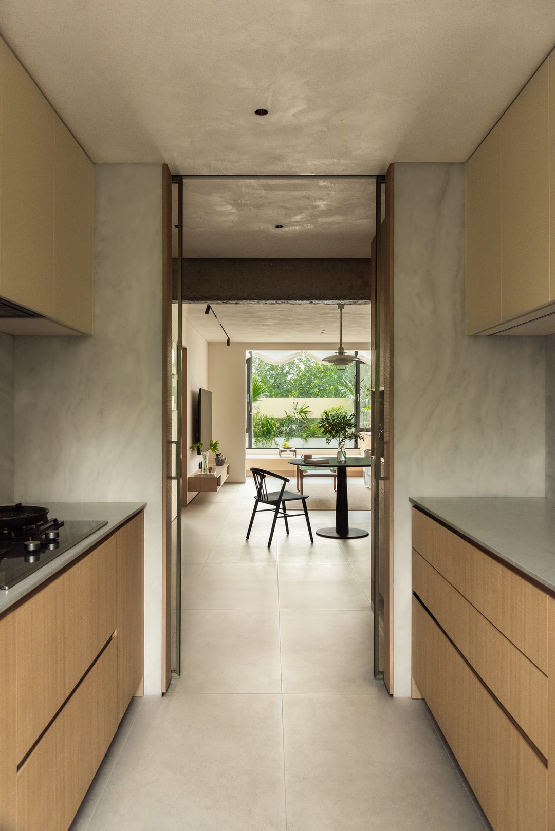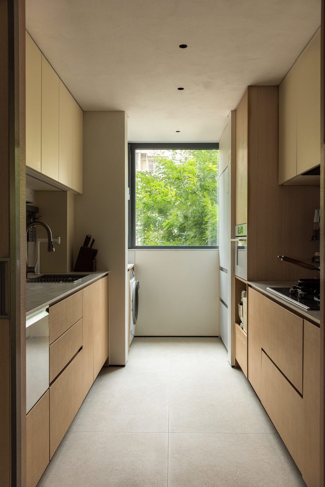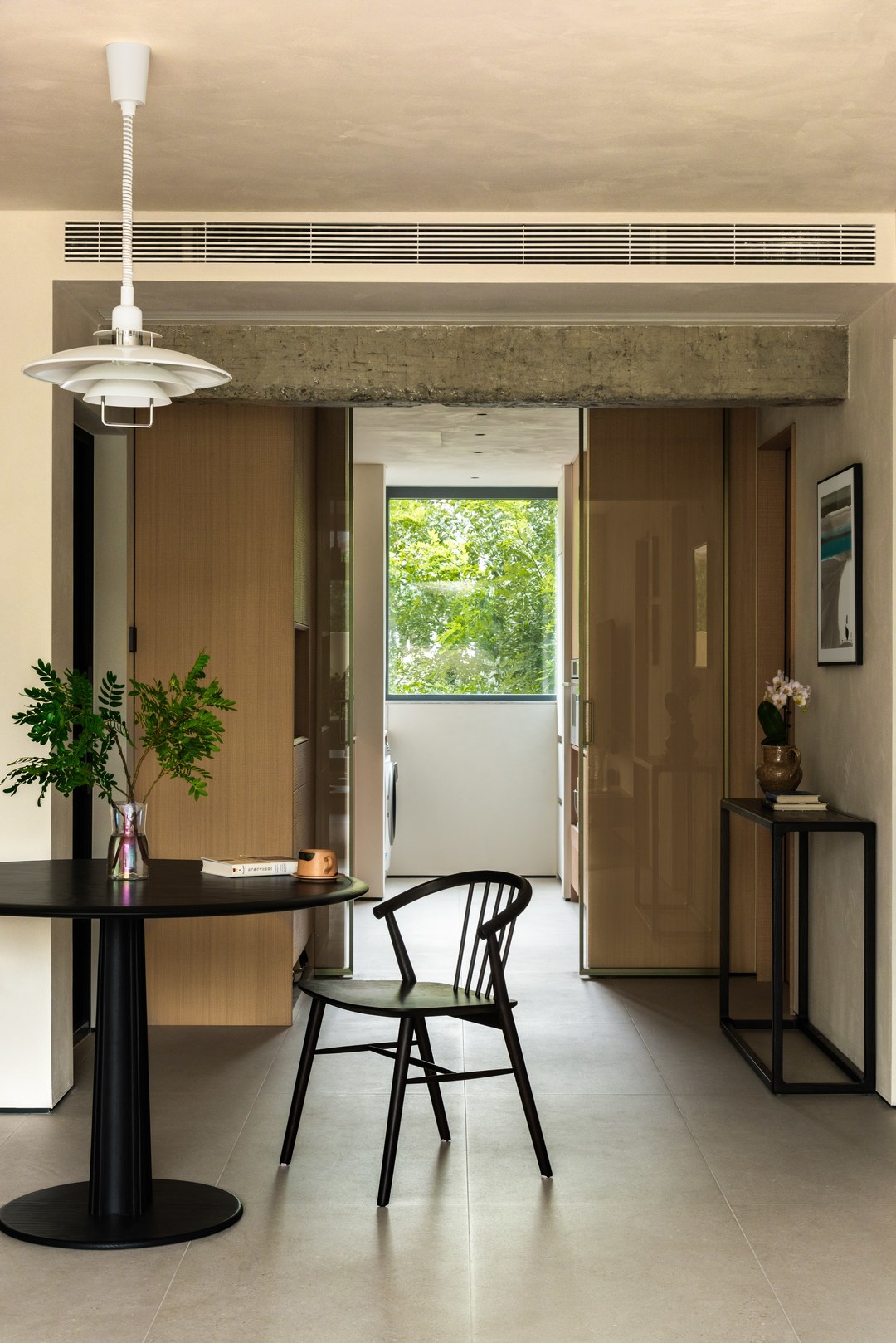 清晰的空间框架与材质逻辑构建出一个开放的容器,让生活轨迹、家具更替、植物生长,