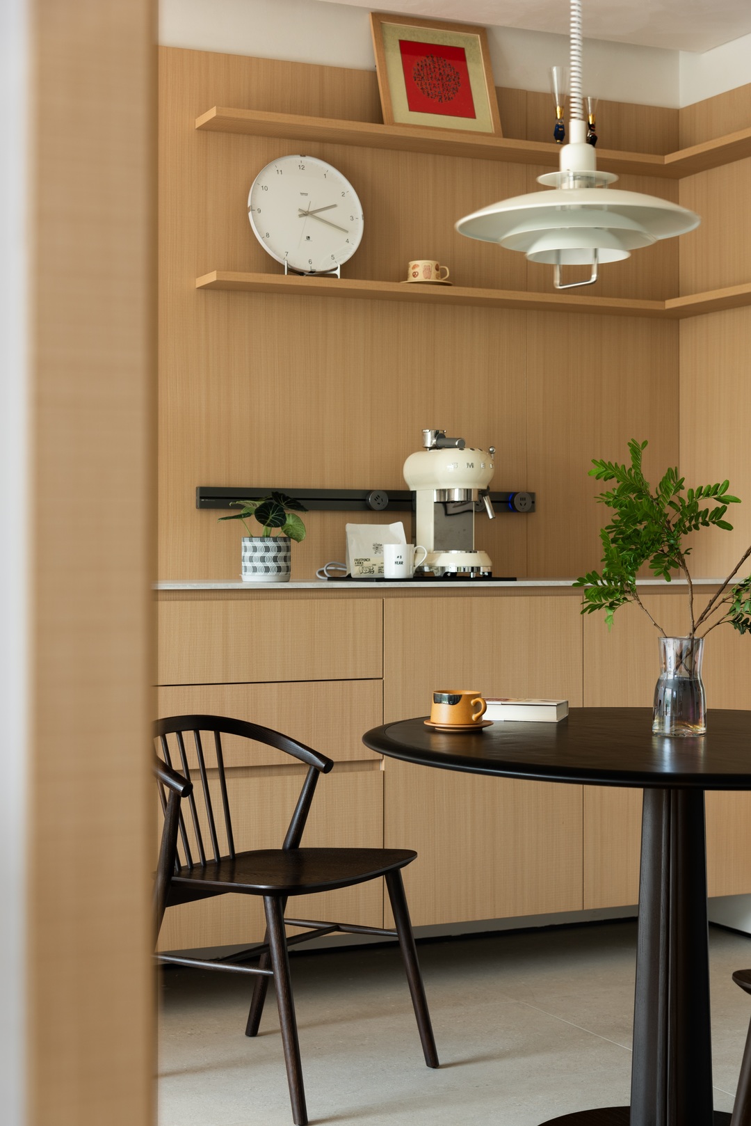 它不仅是栖居之所,更是随时间不断演化的有机系统。墙上的装饰画,一半源自主人的镜头,将个人的视野与记忆,融入空间的肌理与情绪之中。
