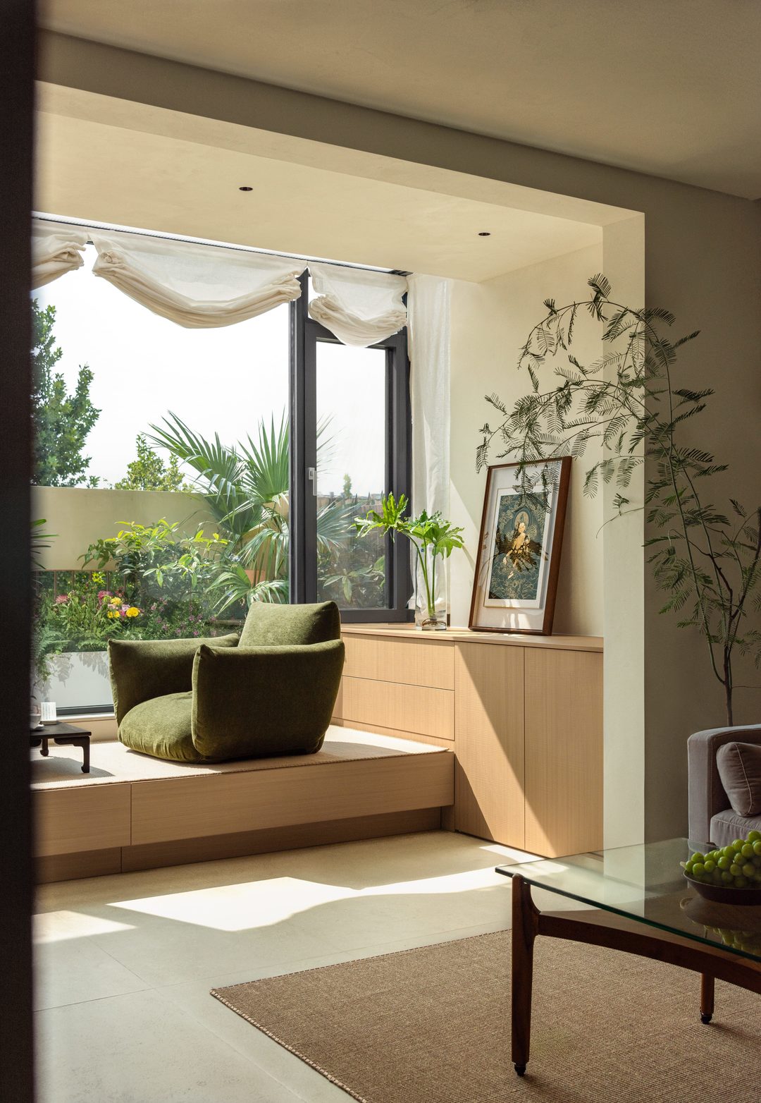 阳台地台抬高,与室内无缝衔接,成为“可坐、可倚”的边界。