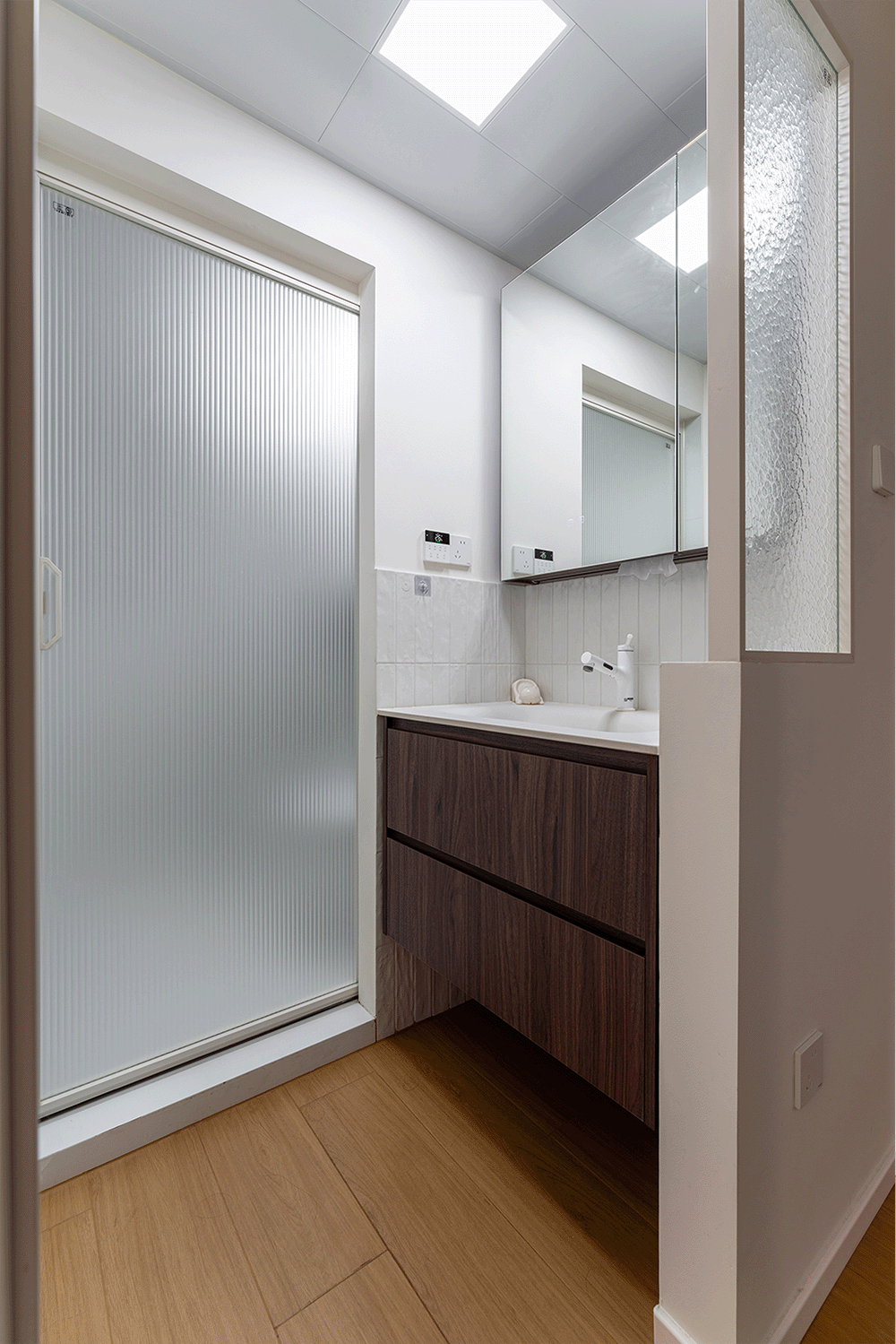 通过推拉门的使用,实现空间的灵活分隔。无需为开门留出额外的空间,这对于面积有限的卫生间来说尤为重要,有效节省了内部容量,使卫生间显得更加宽敞,保持整体设计的简洁和现代感。