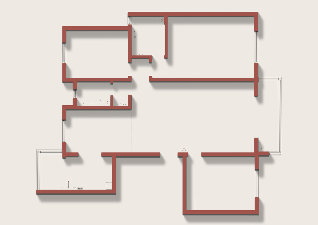 ②户型虽整体规整,但各功能区间相对独立封闭,缺乏通透的视觉连接与空间互动,难以营造开放流畅的现代居住体验。