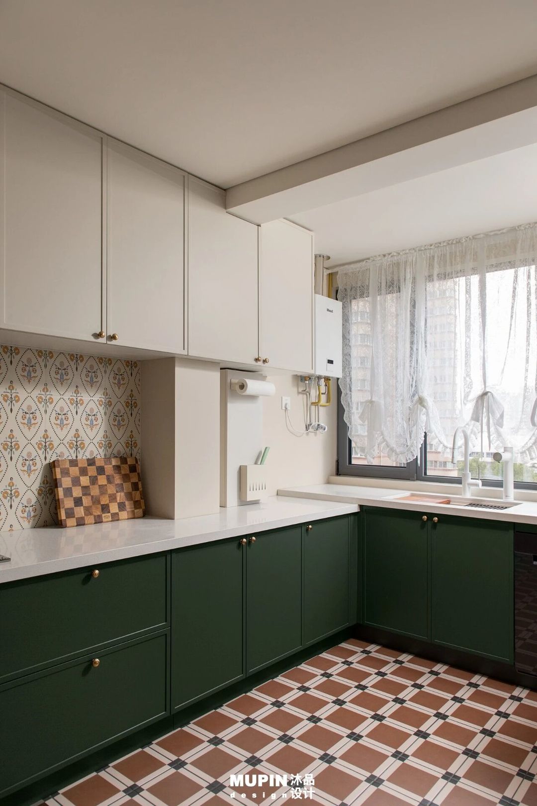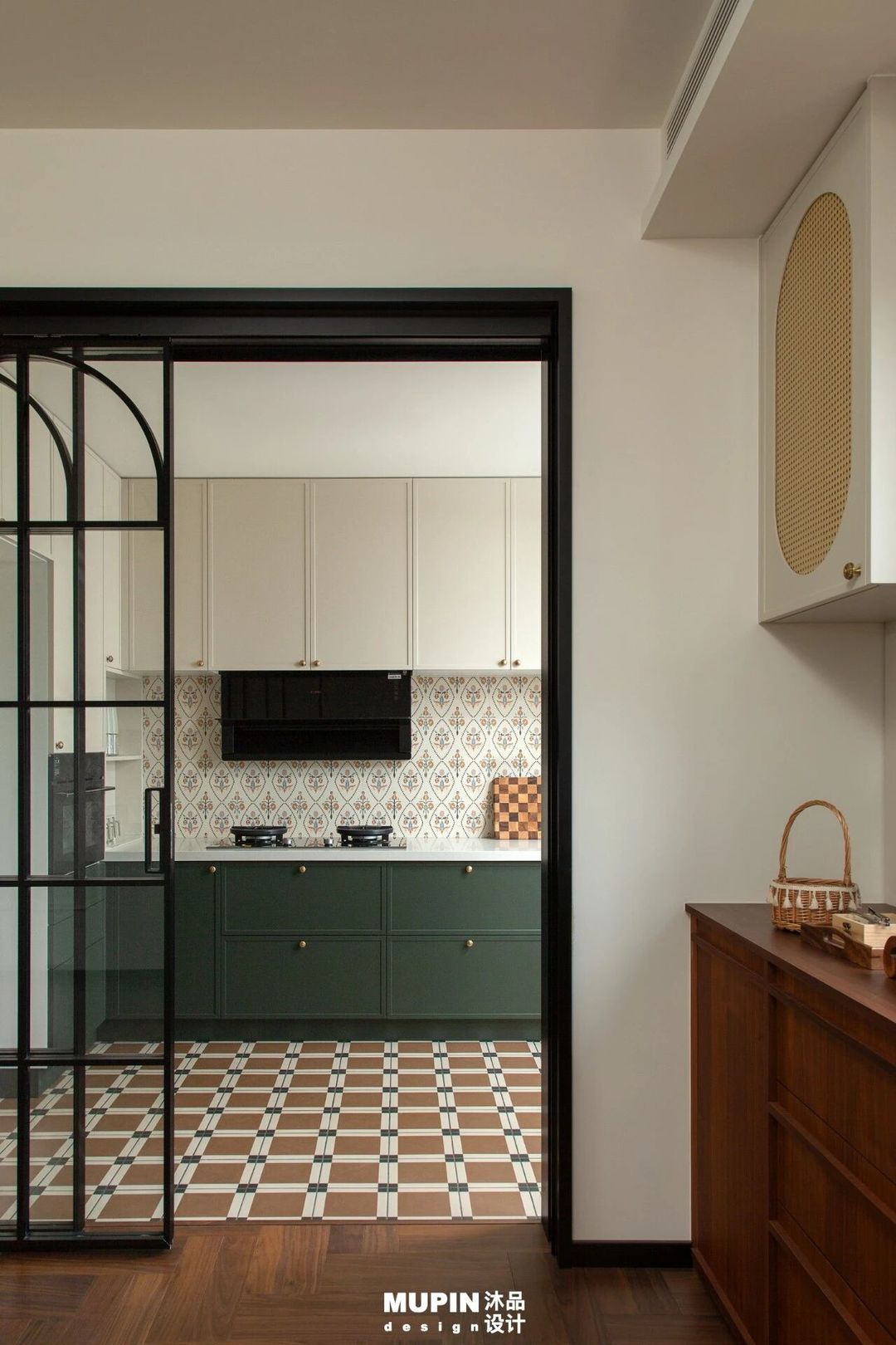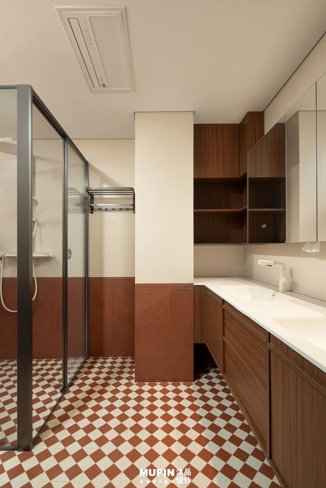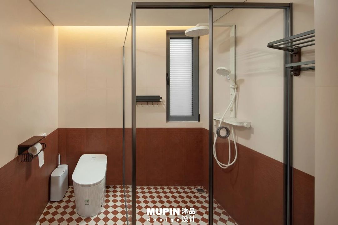 红白相间的菱形地砖与棕白方格砖作为视觉基底,注入浓郁的复古韵律,