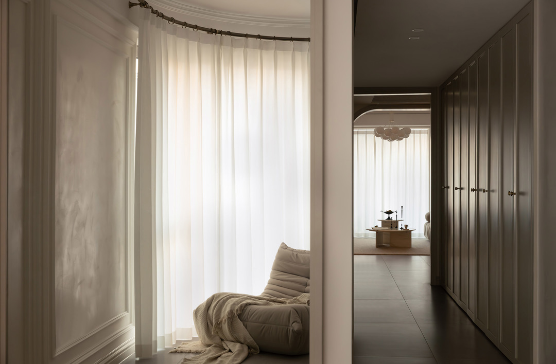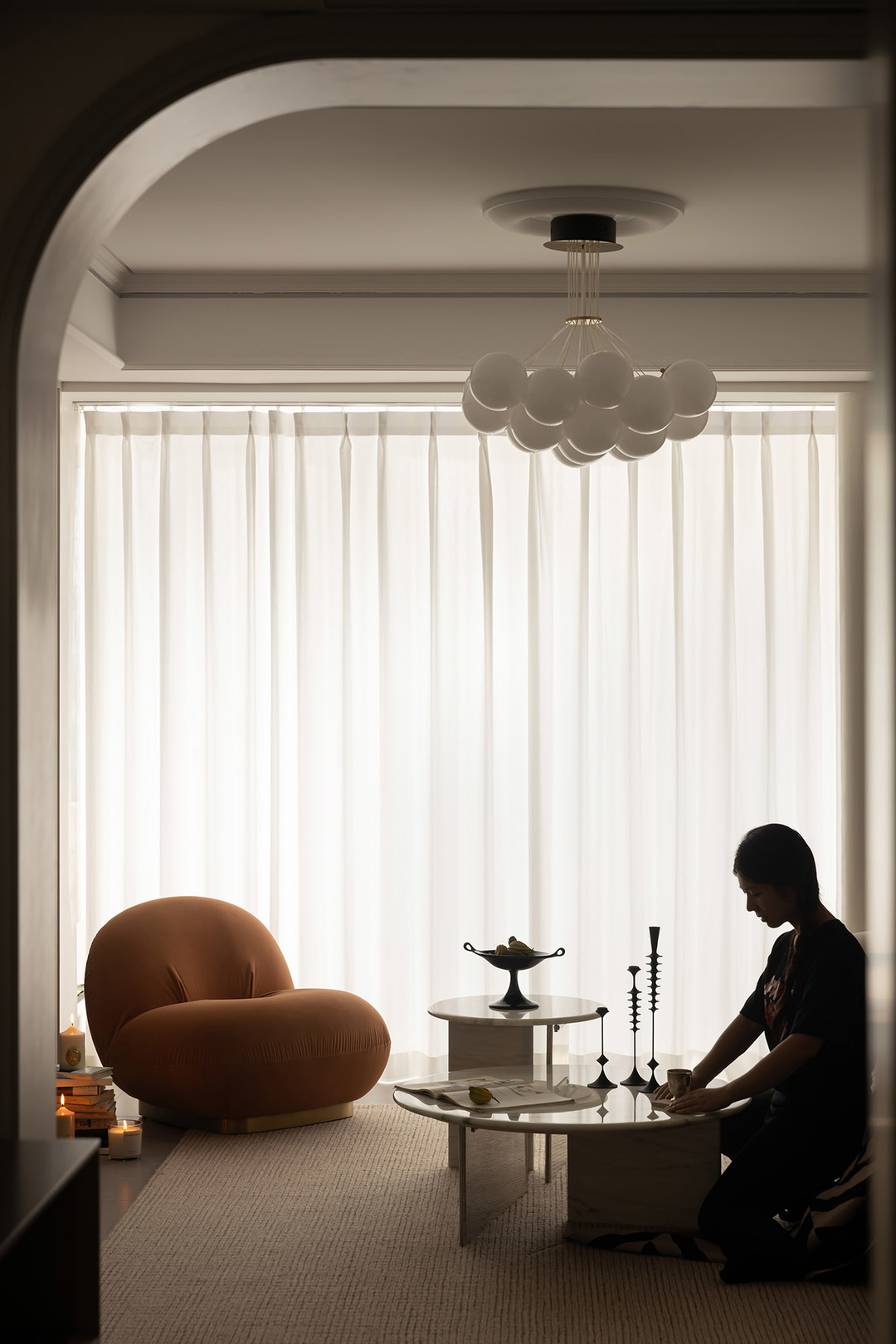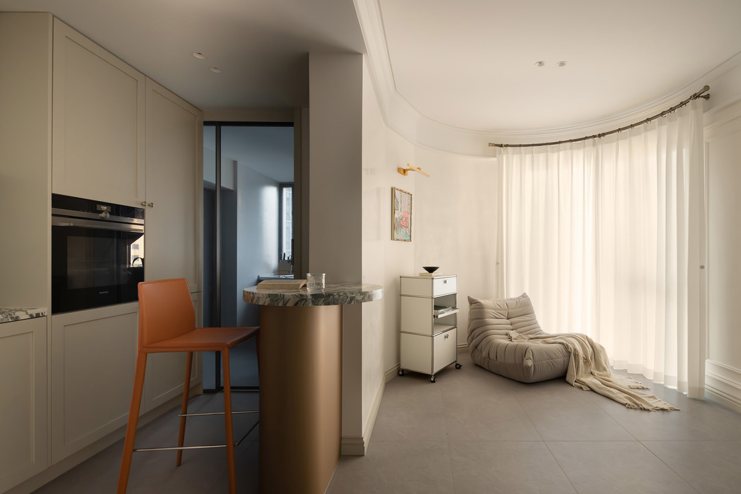 生活由我们自己来雕刻,它甚于设计本身。想要哪种生活,就得去细细打磨它,拥抱它,然后守护它。吧台和休闲角由原建筑餐厅改造而成,如今成了一家人最喜欢的地方之一。静谧之中,柔纱、光影相映成诗,这里让心栖息,更为自我的成长凝聚了可能性。