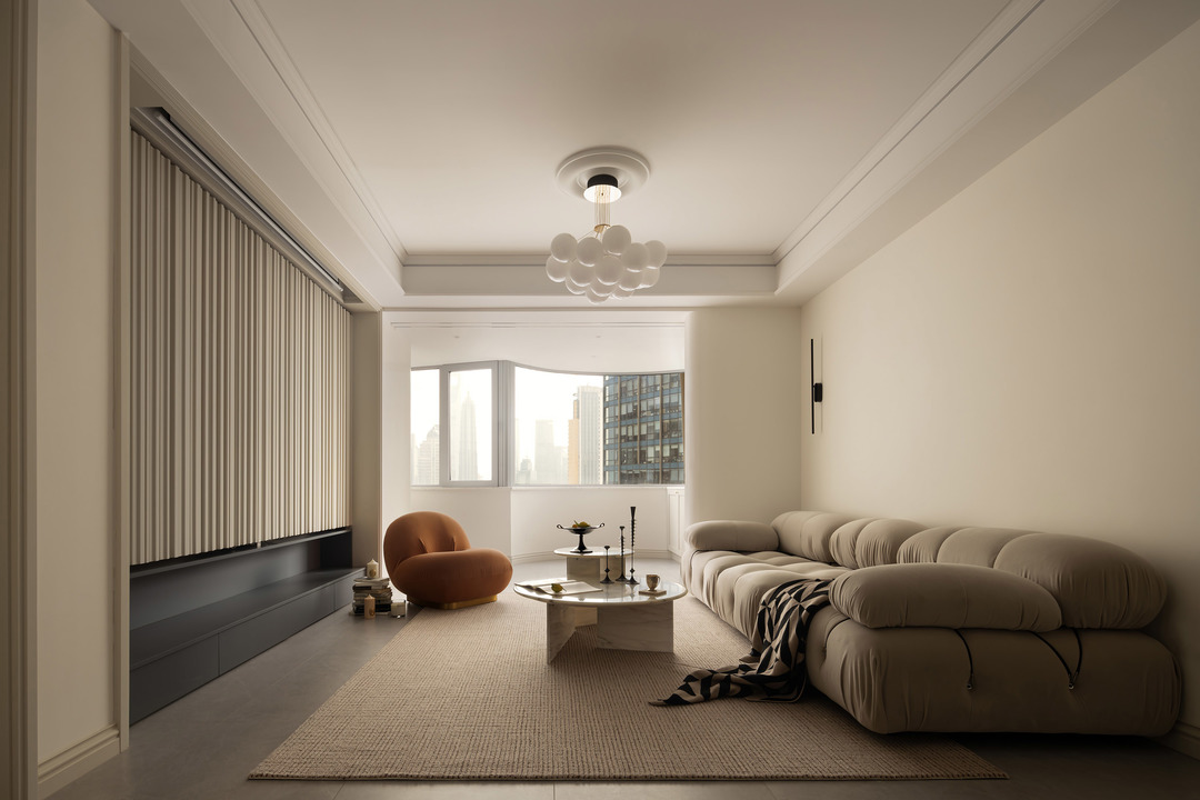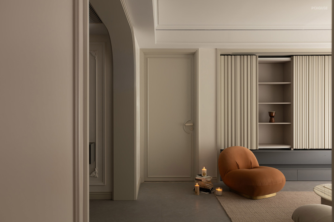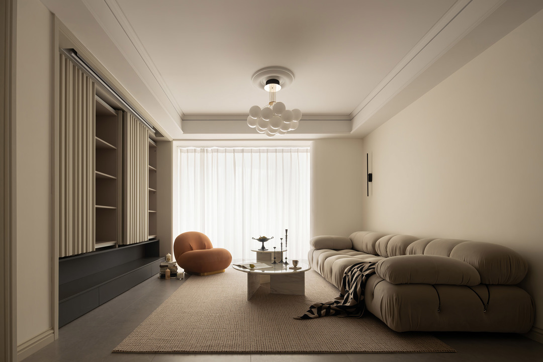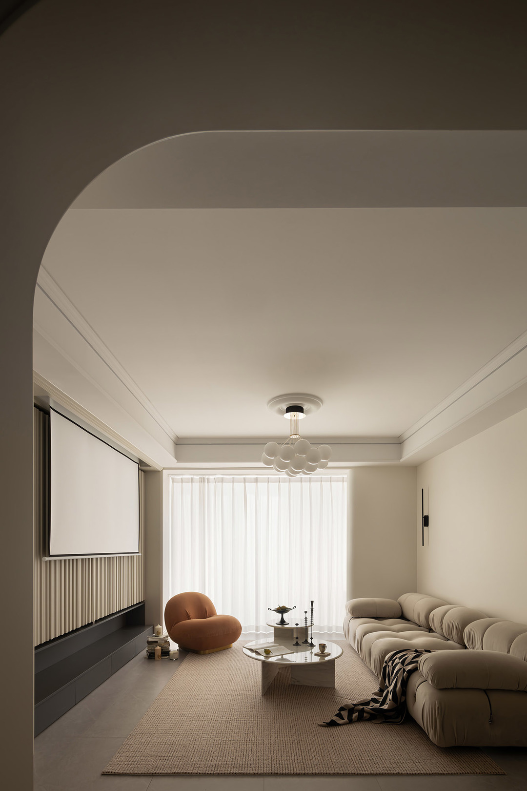 步入客厅,米白和浅灰大面积铺陈,纯净、温和的氛围,似拂去了一切尘杂,沁润心扉。此时,无需过多的语言,一任情绪蔓延,去感受家柔软的呼吸,触摸它静时的灵魂,以消解烦忧,寻觅安乐。