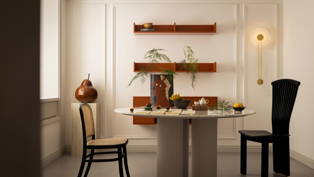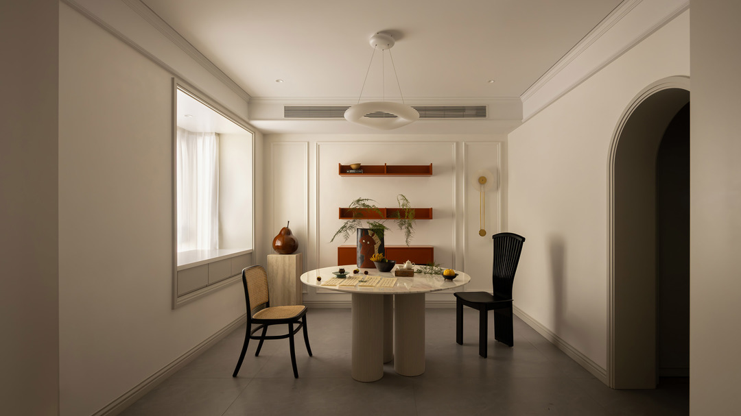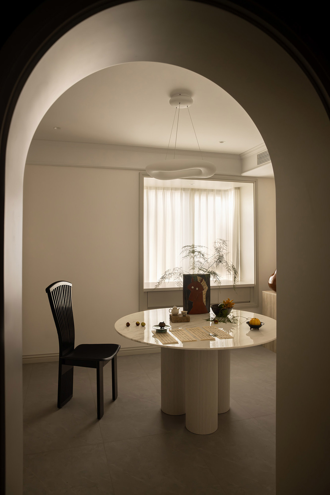 一道拱门,定格餐桌上的笑语时分。围桌而食,一家人彼此关怀与倾诉,光顺着窗户照了进来,和着浓烈的爱意表达,在整个空间里游动。