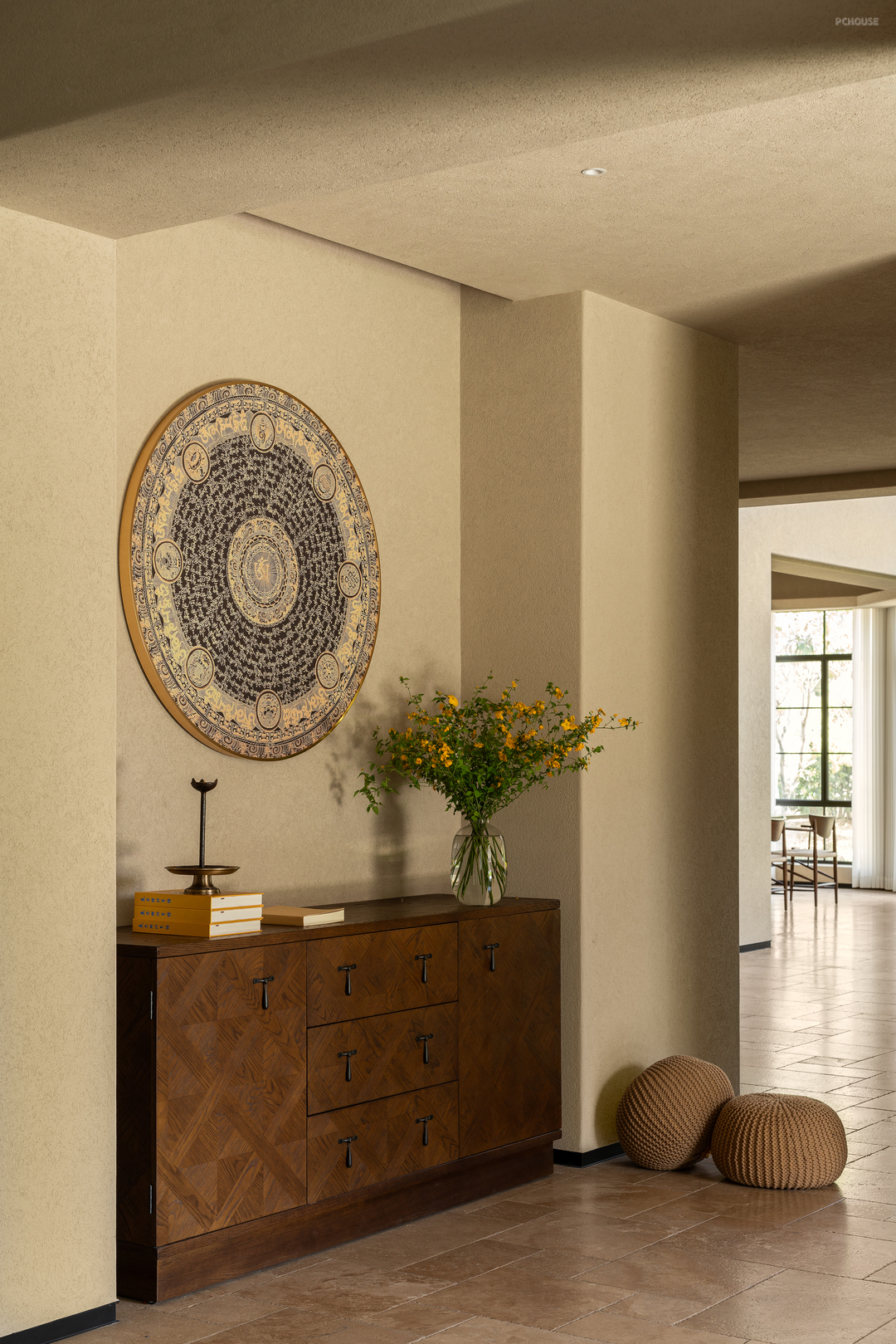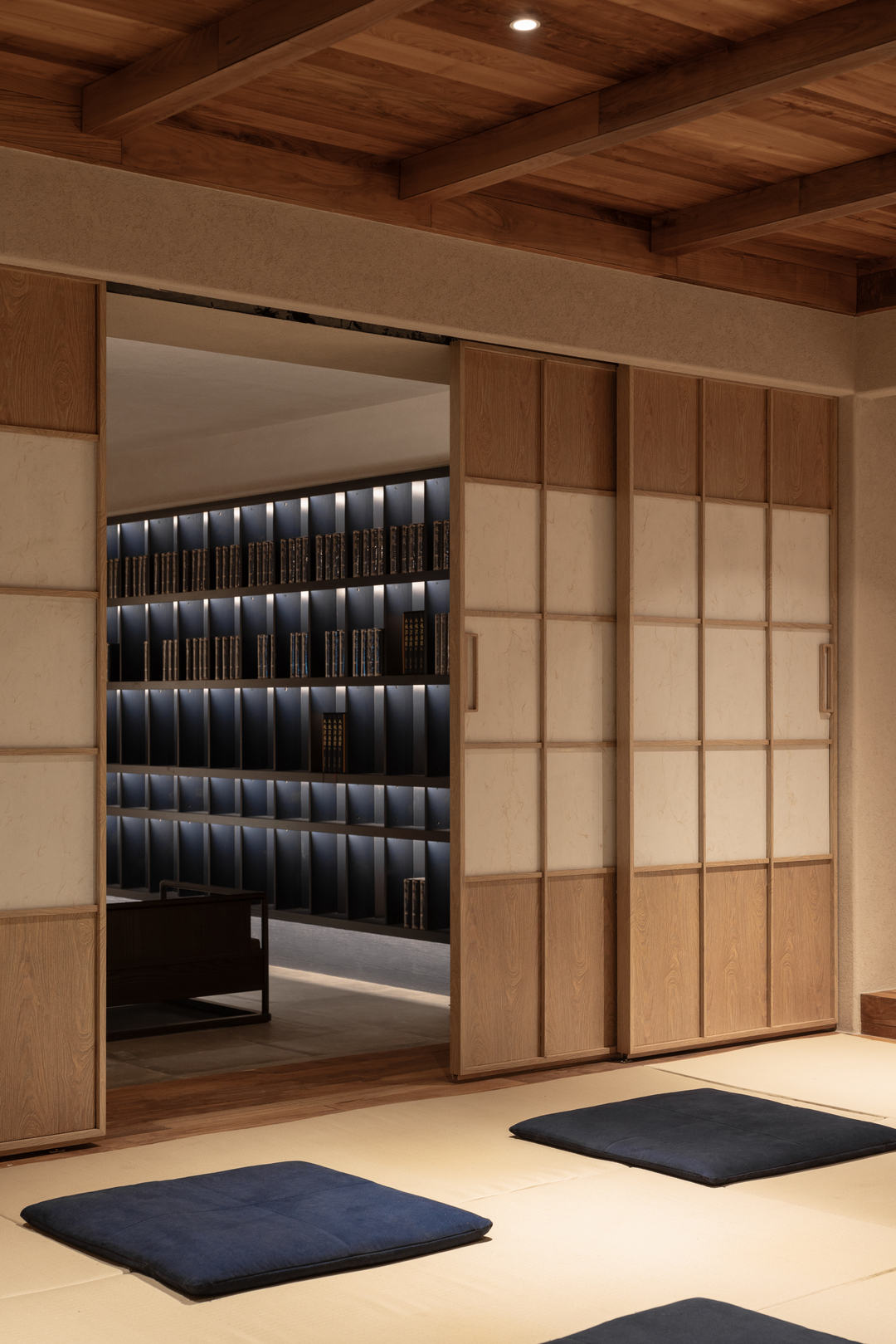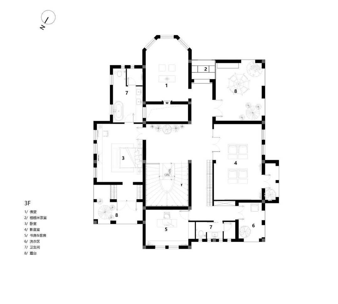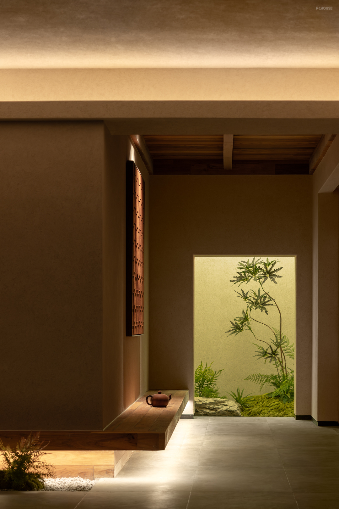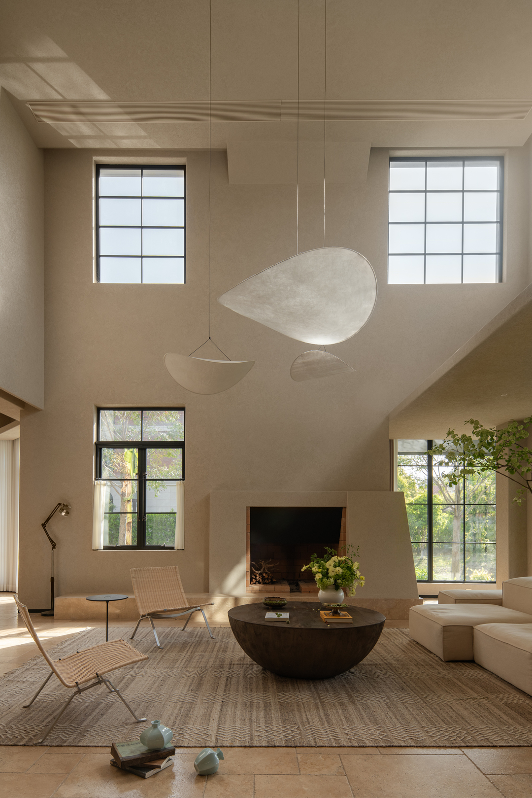 设计摒弃繁复装饰,大量选用硅藻泥、水洗石与实木地板等天然材料,构建出一个素净、包容且隔而不断的空间基底。通过重构电梯井,引入贯穿三层的天井,使自然光成为空间流转的灵魂。地下一层突破了该类型空间常规的储物功能,转化为冥想与独处的秘密花园;而耗费1500米麻绳手工缠绕的穹顶,则成为具象化的修行隐喻。