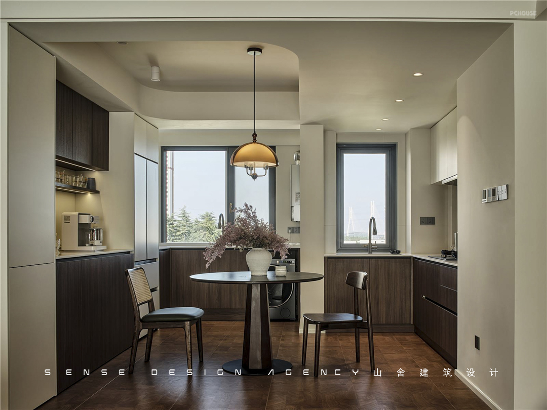 U字型高效布局: 围绕餐桌的三面U型空间,我们进行了极致的功能规划: