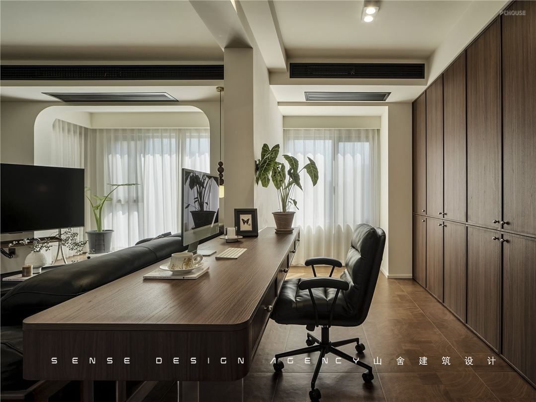 书房是与客厅融为一体的延伸空间,强调功能性与整体美感: