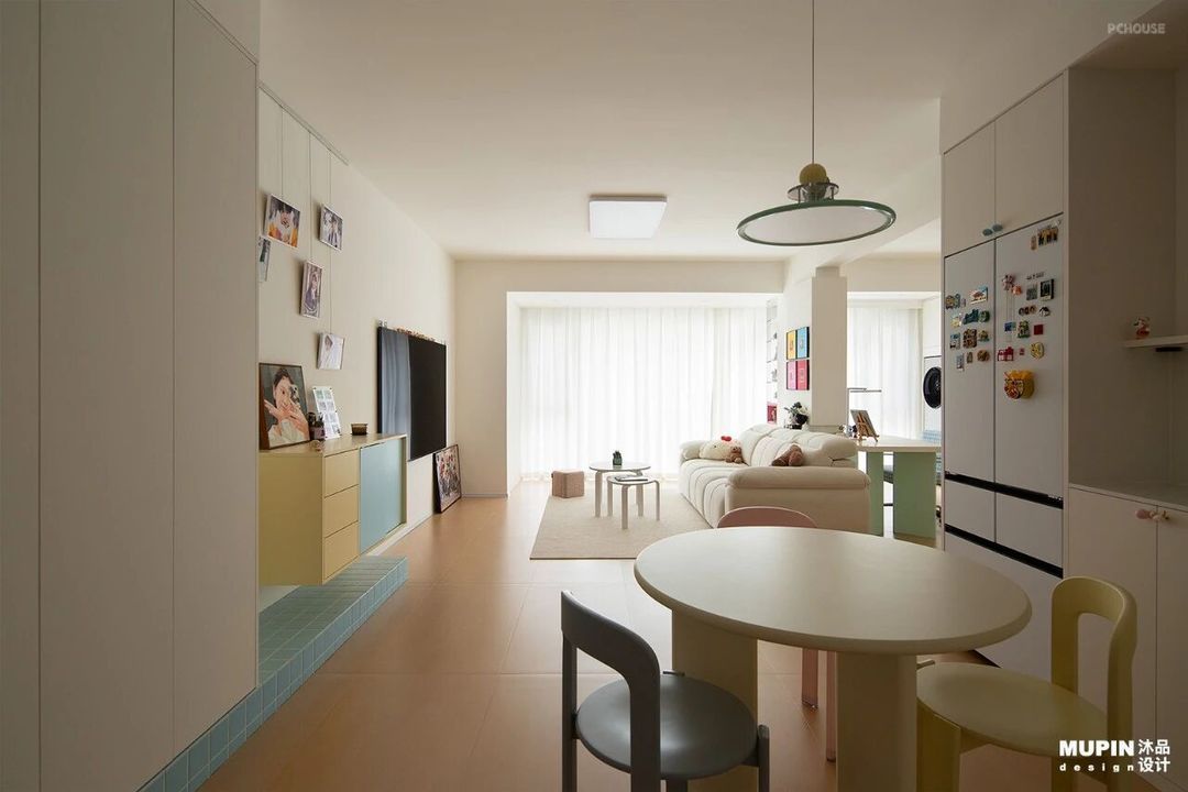 ”本案的常住人口是个可爱的小姐姐,业主希望家里充满温馨活泼的氛围。设计师在这套设计上没有追求 “网红化” 的浮夸造型,而是围绕 家庭日常居住展开 。从色彩搭配到空间布局,从收纳细节到软装选择,均以 “让居住者舒适、方便” 为出发点:既满足了 做饭、休息、梳妆、收纳”等基础功能,又通过色彩、装饰传递出 家的温度,最终呈现出一套 好看、好住、好打理 的住宅设计,真正实现了 “设计服务于生活” 的核心目标。