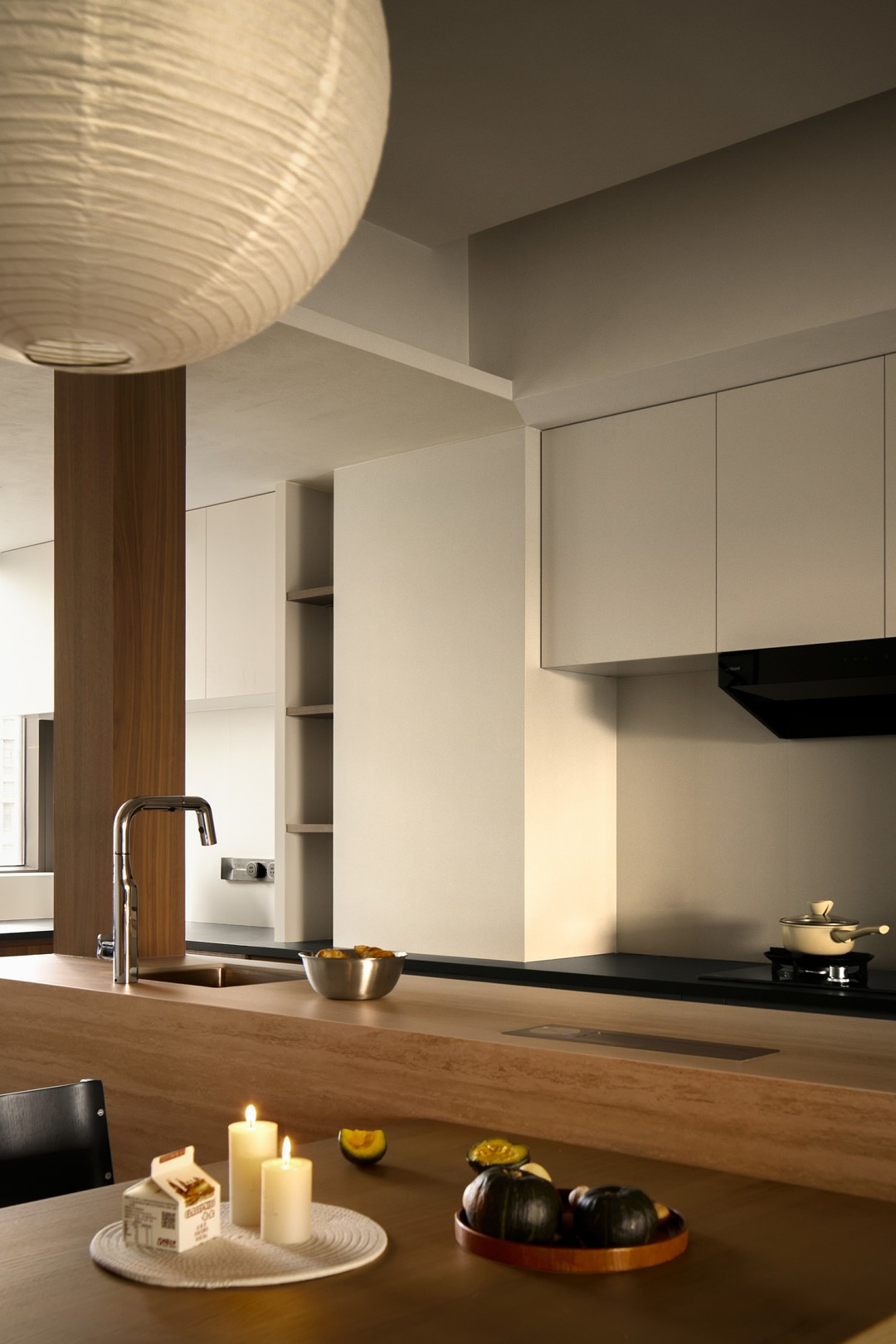 蔡澜说:“烹调是一种艺术,一道好菜,往往是艺术与技术的结晶。”厨房岛台恰是这一理念的延伸,它融功能与情感于一体,成为家的互动核心。烹饪的本质不局限于饱腹,更是手与心的协作作品,业主在此拍摄美食视频,也在传递身心合一的理念。