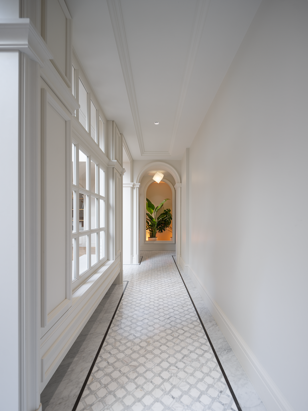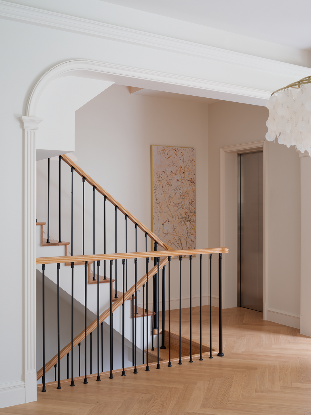 为了进一步突出法式风格的建筑感,三层楼梯结构全部打通,B1与B2的楼梯结构形成了一个艺术品般的端景,错落有致,层次分明。
