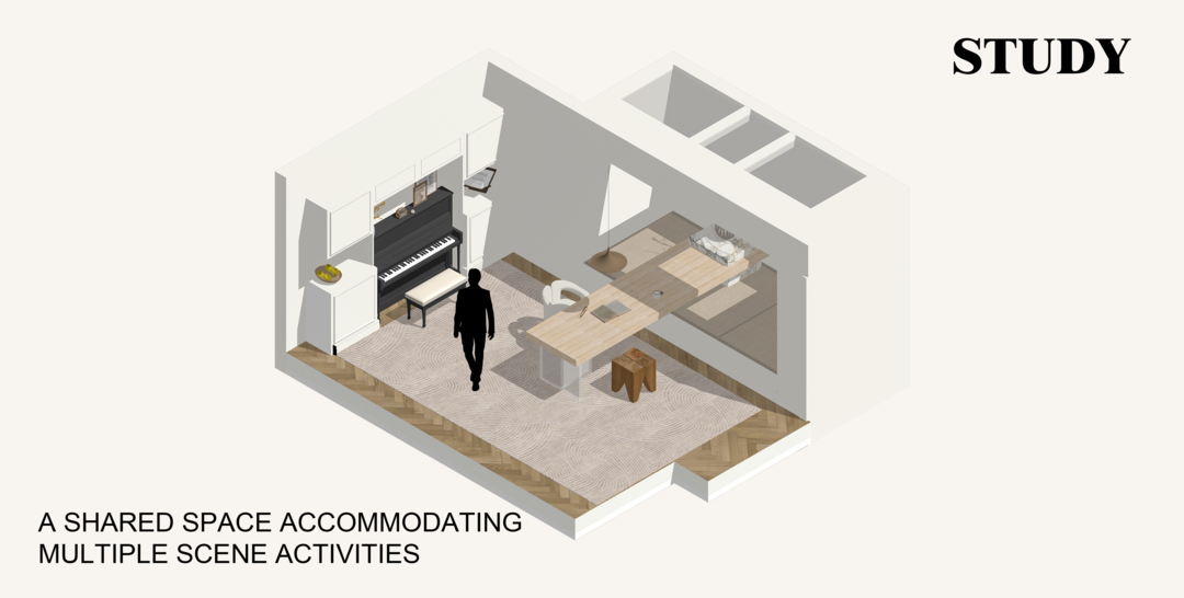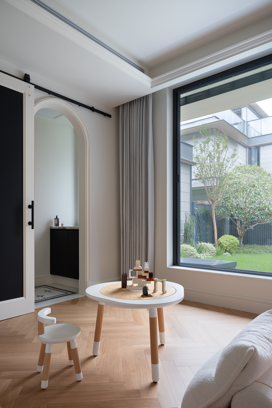 一楼的起居厅,是一方被阳光轻吻、被童真浸润的小天地。平时,小朋友可以在这里玩或者画画,释放无穷的想象力与创造力。这里不设边界,只盛放好奇与创造,任小小身影在此自由生长。