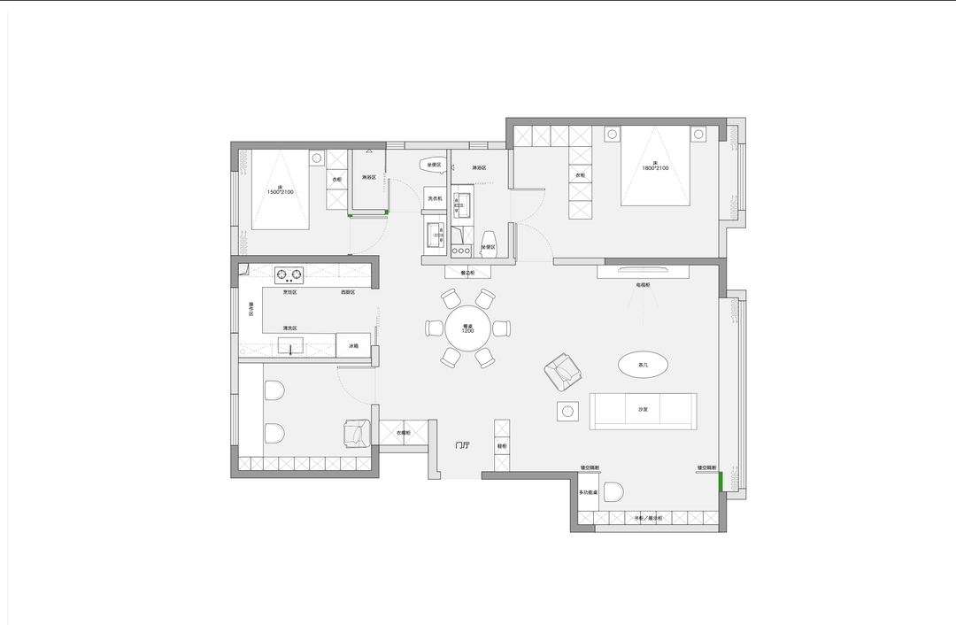 前言: 「青屿」之名,源自“青霭掩岛屿,绿意栖人心”的东方栖居哲学。设计以“岛屿生态”为隐喻,将家视为悬浮于都市喧嚣中的静谧绿洲,通过“去边界化”手法模糊室内外分界,构建流动的绿色呼吸系统。空间内核遵循“侘寂·简”的双重逻辑——既保留东方禅意中残缺质朴的美学肌理,又融入现代极简的功能主义,最终达成人与空间的深度共栖。