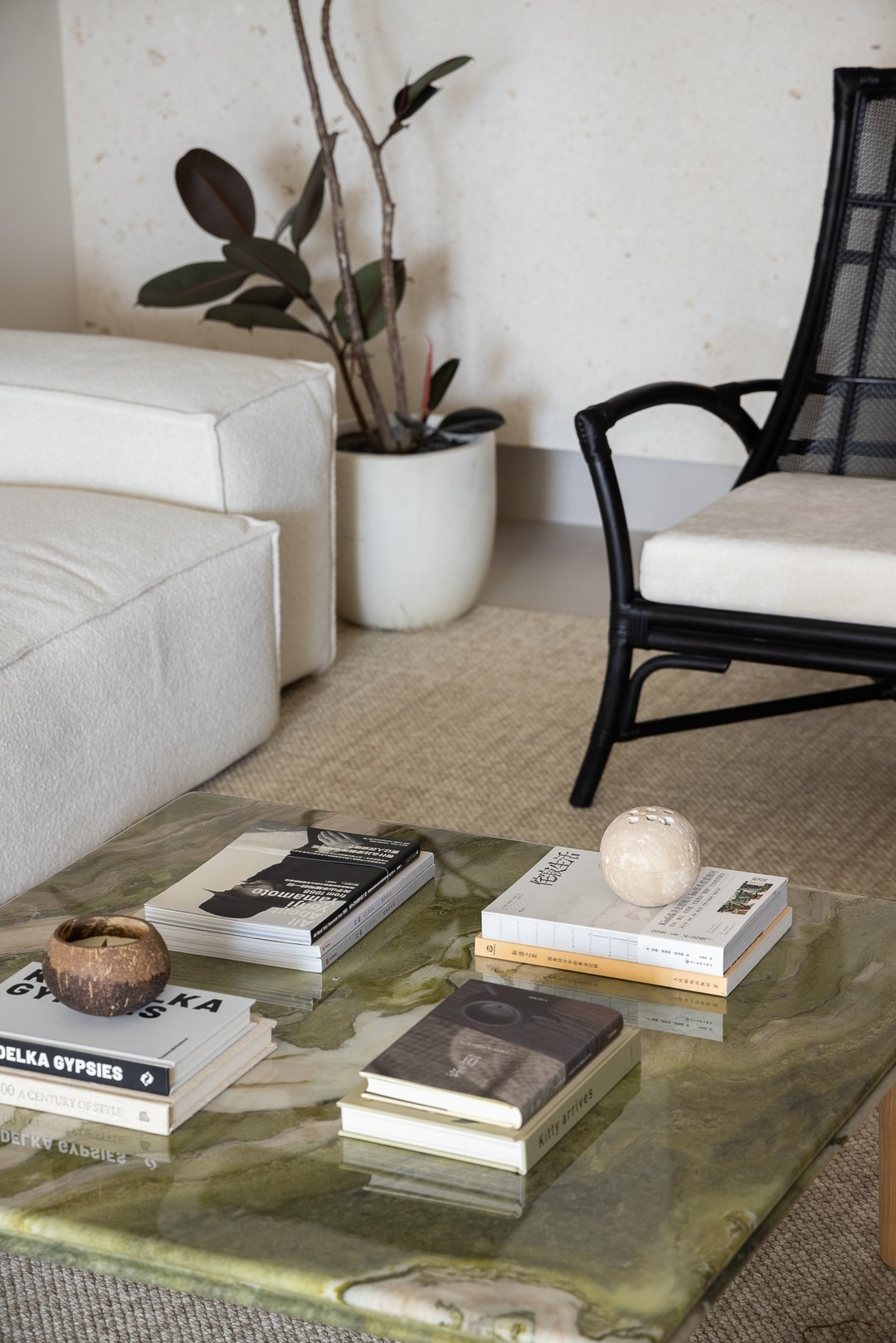 “栖居”不仅是物理空间里的活动,更是人在四重维度中获得存在意义的过程,客厅一隅,借盆栽收纳自然之息,爱尔兰绿大理石成为了空间中的一大亮点,沉浸于日常,又越过普通,真正抵达本真之境。