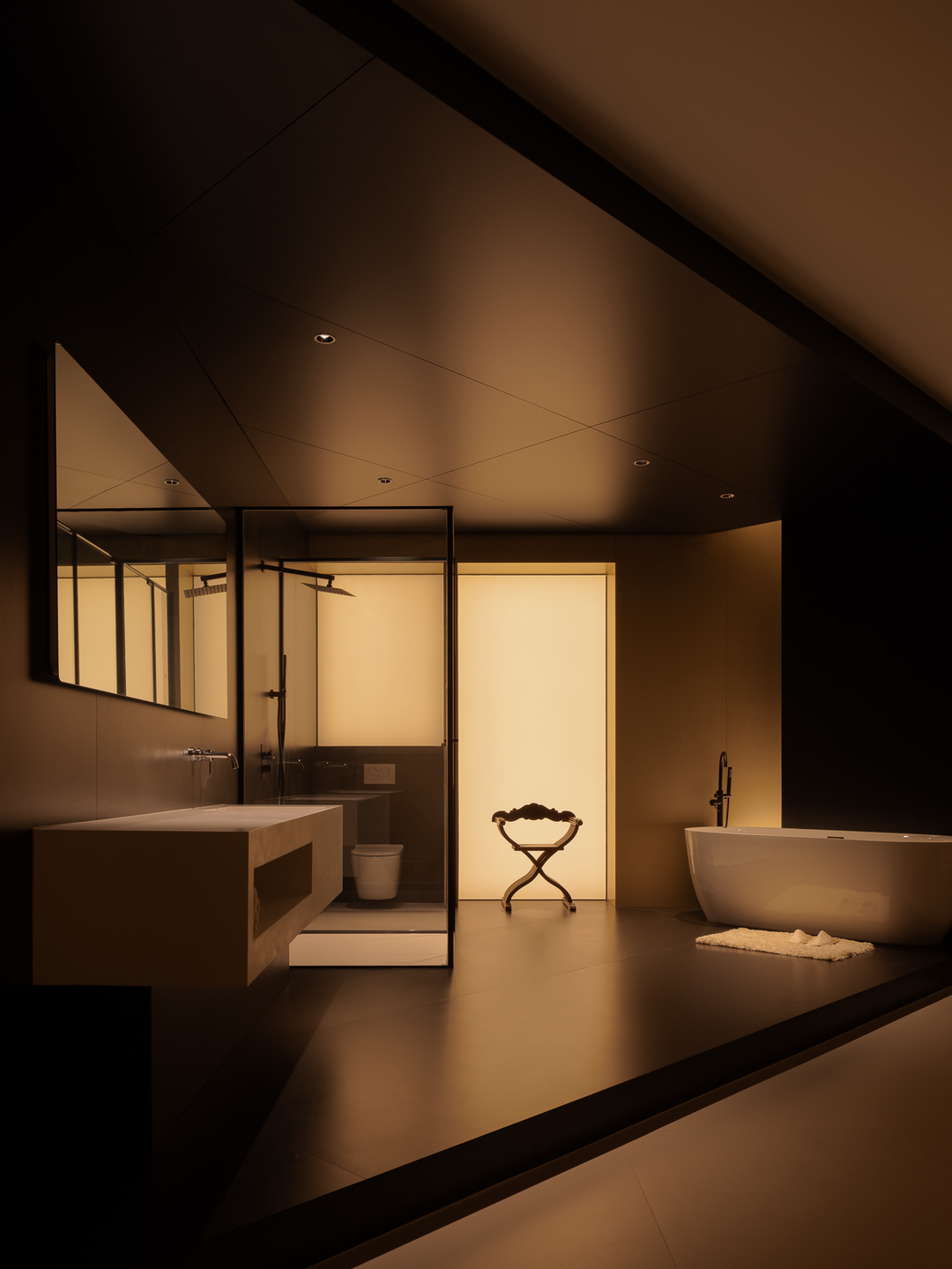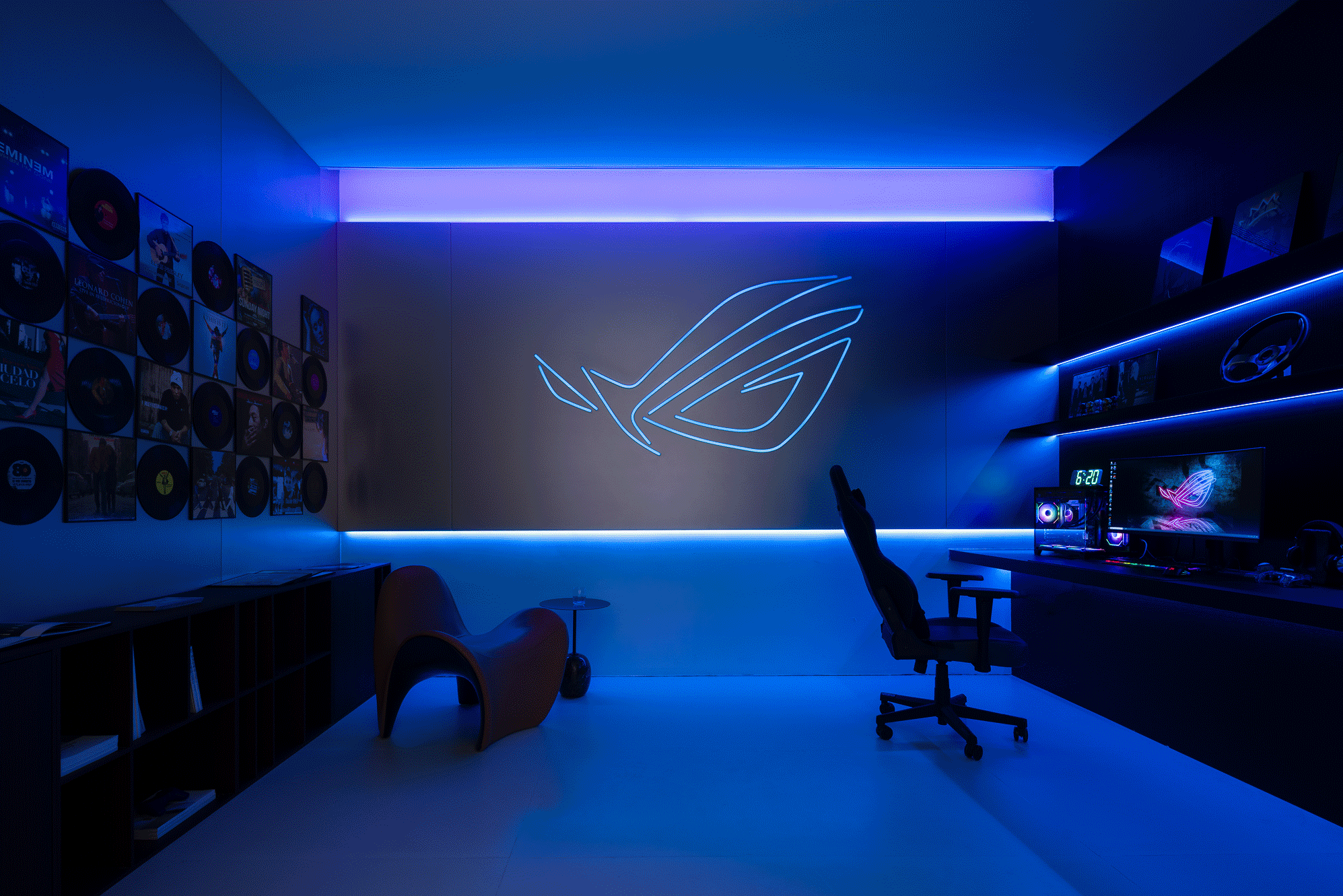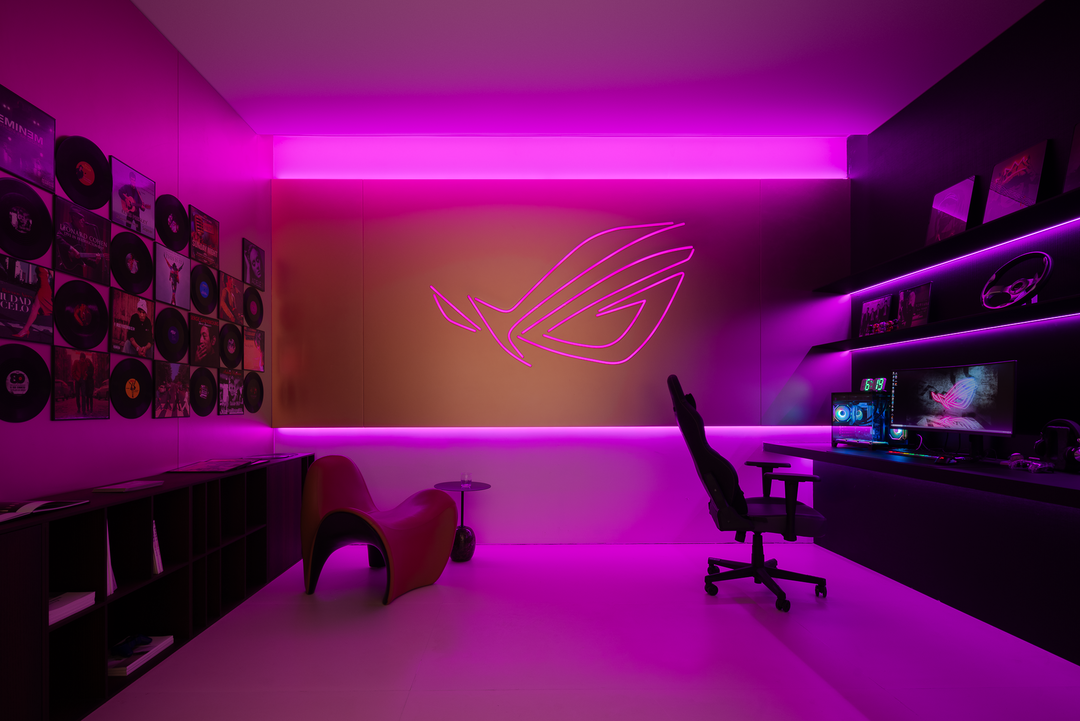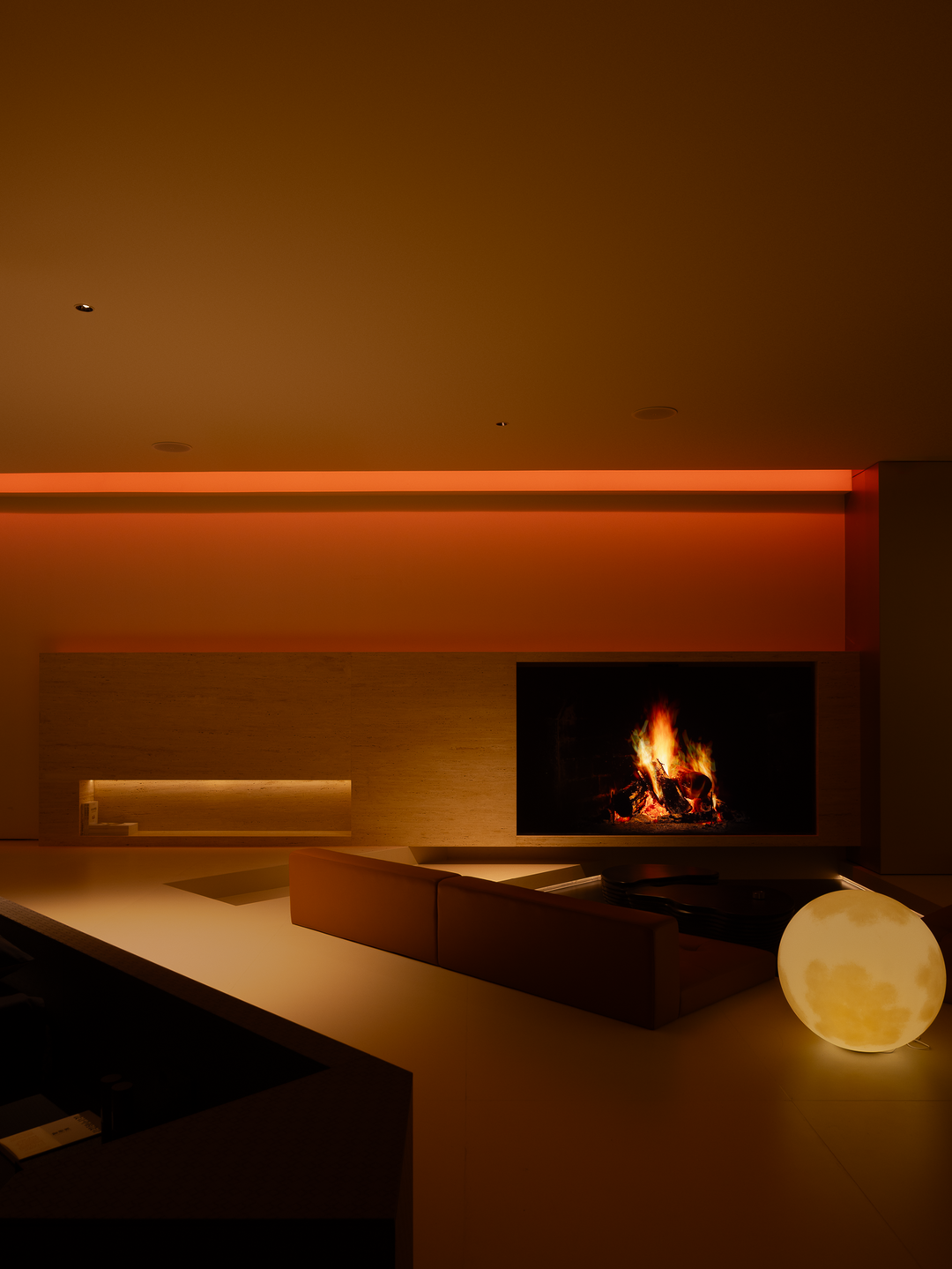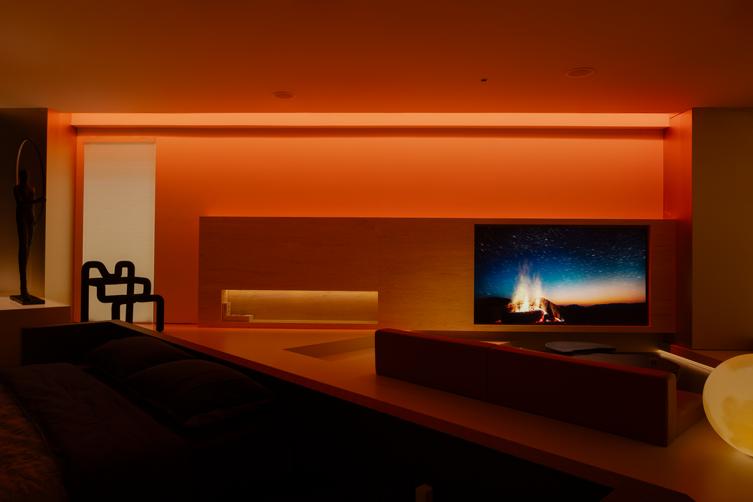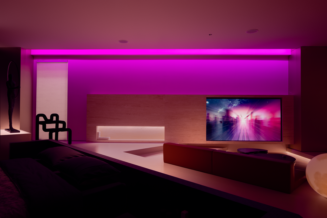 空间本身是极致的留白,所有实体皆为光的载体退让。按键启动,模式切换,光影瞬变。可以是白光覆盖,光谱精准模拟晨间情境,激活唤醒状态;也可以霓虹闪烁,表达夜晚派对的恣意与欢愉,任凭情绪沉沦;或是跌入黑暗,仅余临界微光与地脚线的线性指引,提供沉浸式的影音体验.…