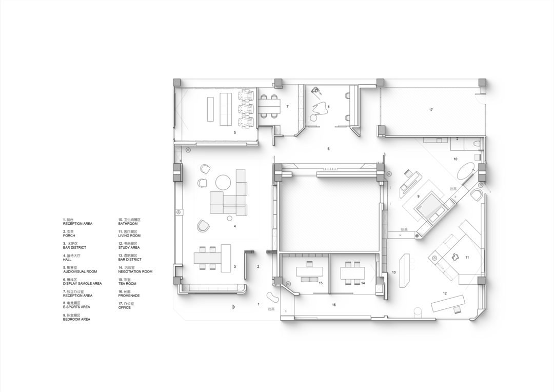 甬道的尽头豁然开朗,一个关于家的“光学实验室”便徐徐展开。客厅、餐厨空间、卧室、卫浴、电竞室、影音室..…以精妙的洄游动线串联。自然向内行走的过程,开始感知相同场景在不同灯光作用下的神奇体验。