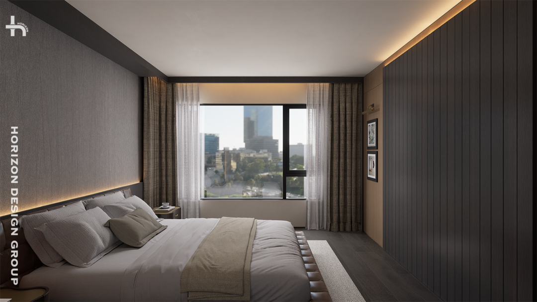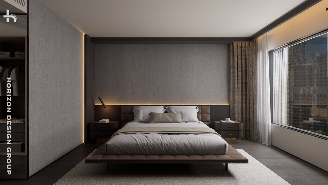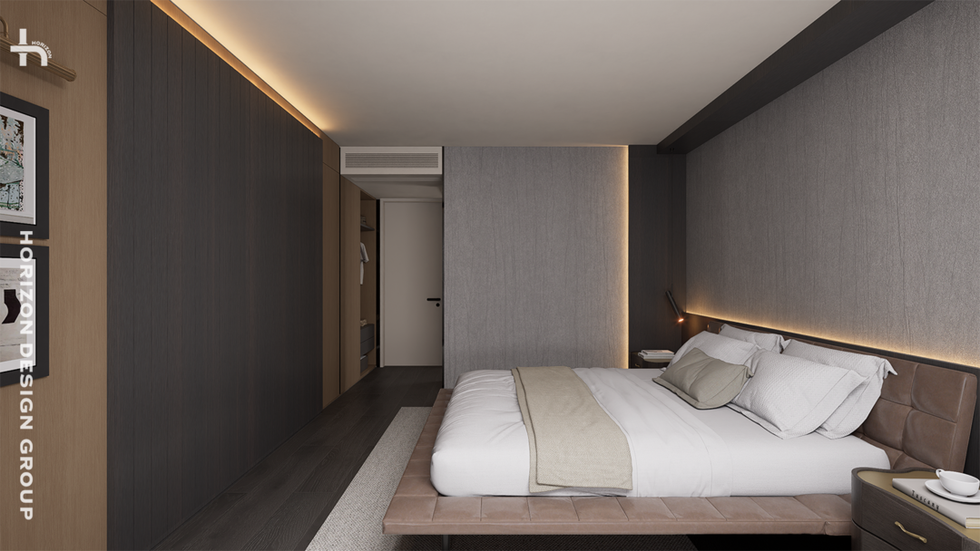 专注于主卧休息区域本身的氛围营造,核心在于顶面与立面的创新结合设计,旨在提升空间感、层次感和视觉独特性,满足居住者的审美与心理需求。