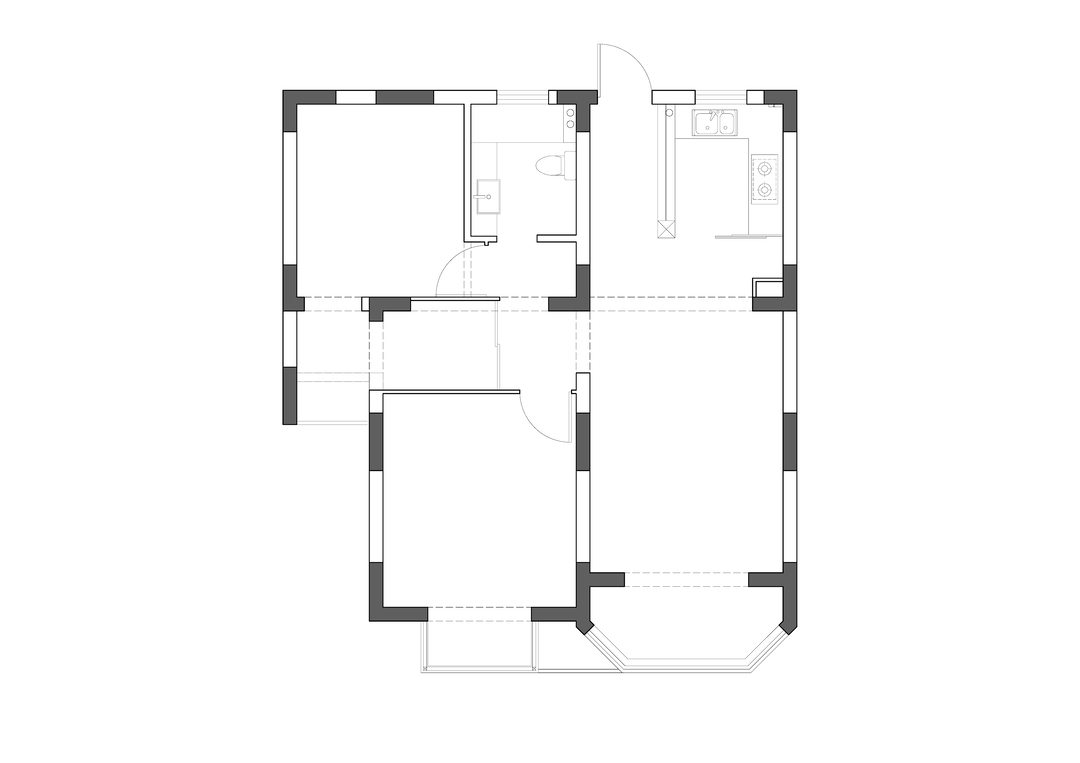 本案建筑面积100㎡,实际使用面积只有75㎡,各空间都很碎很小,且全屋很清晰地分为了左静区右动区。然而,如果就这么按照普通几室几厅、动静分区的方法去考虑它的话,基本上这房子算浪费了。白天,业主夫妇上班,家里长辈来带娃,可活动的空间就只有右半边,左半边的部分利用率几乎是零。怎么能让这75㎡的空间更高效地利用起来,也是我们改造时的一个重要课题。