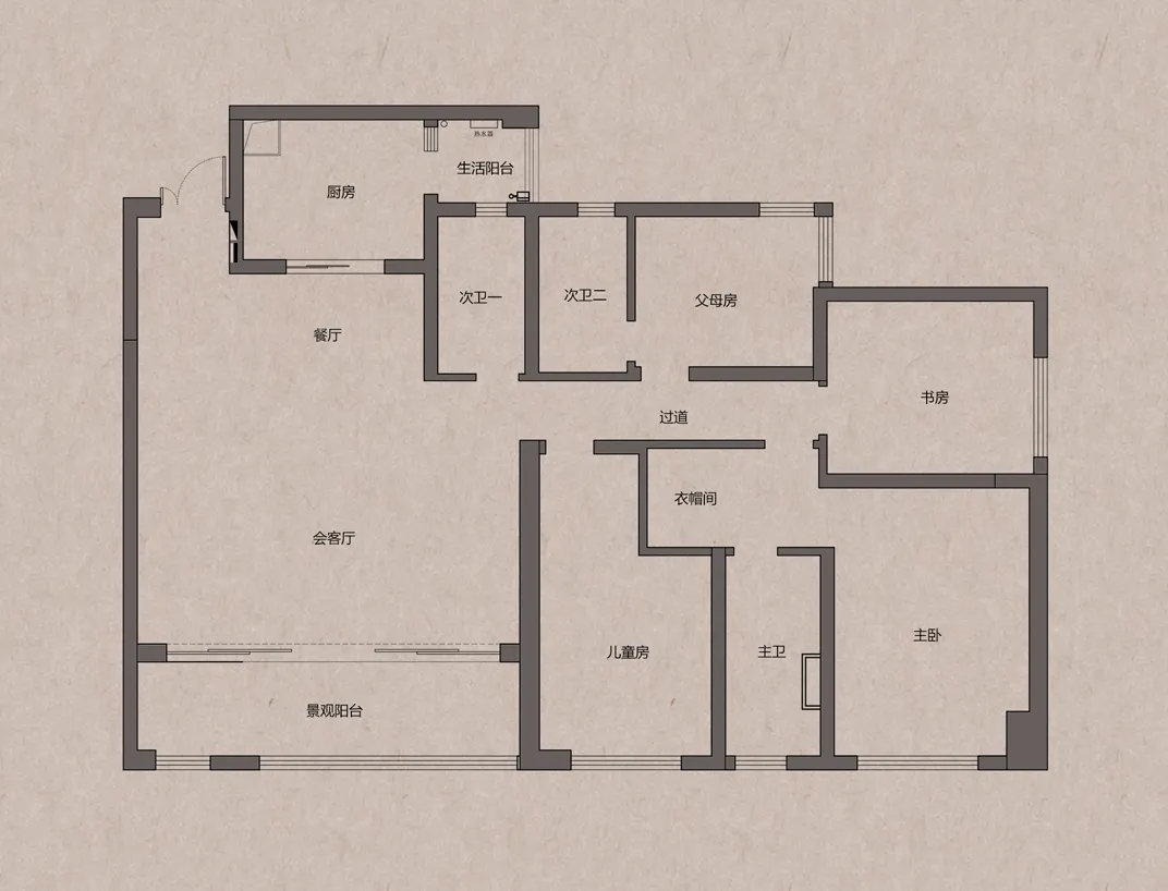 5、将原有的书房容纳到主卧,改造成衣帽间,完成套房功能。