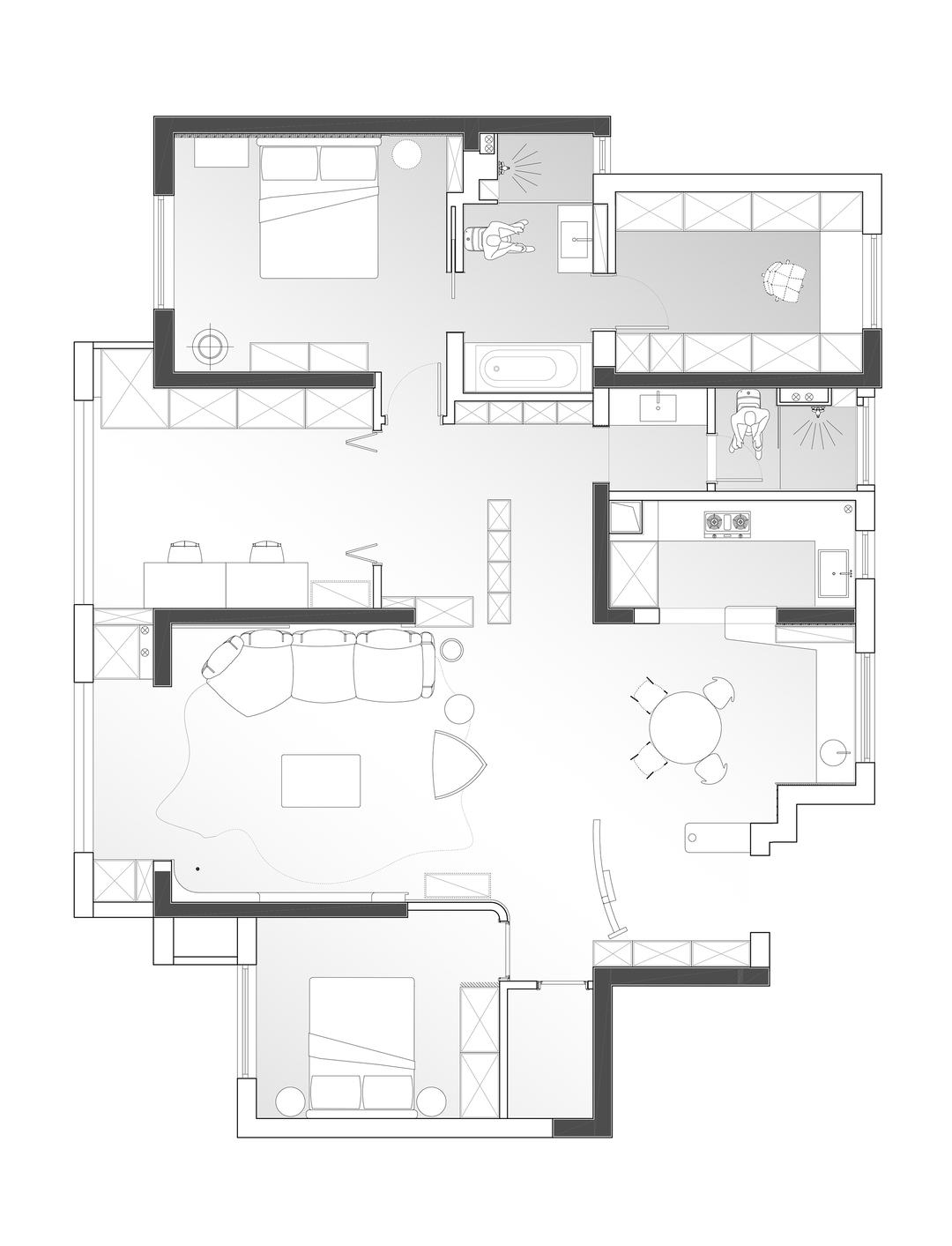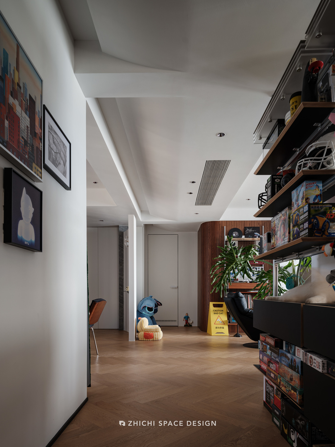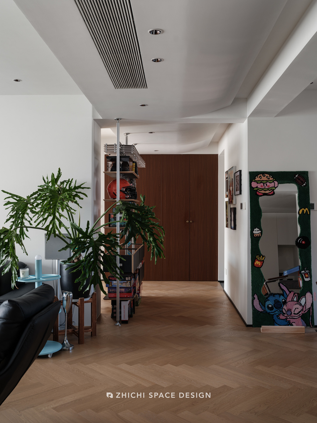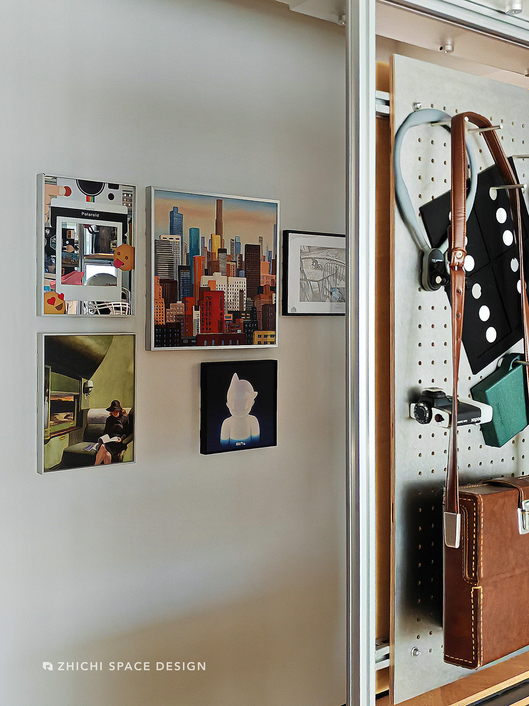 过道可以说是全房的C位担当,作为从公区过渡到私人领域的缓冲地带,承载着屋主对生活的热爱。