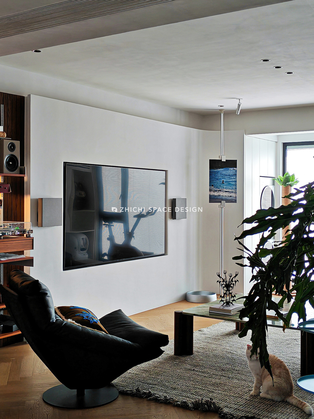效果图阶段就已足够惊艳,来到完工后的家,更觉得生活气息浓郁。这个家,杂糅了现代、中古、包豪斯的特点,又有些许东方韵味。