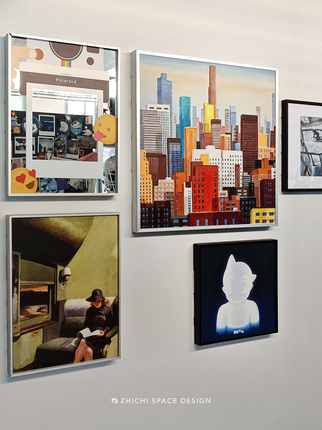 过道的装饰画是屋主喜欢的艺术家作品,很有意思的是左上角那面镜子,身高178cm能正好照到脸。