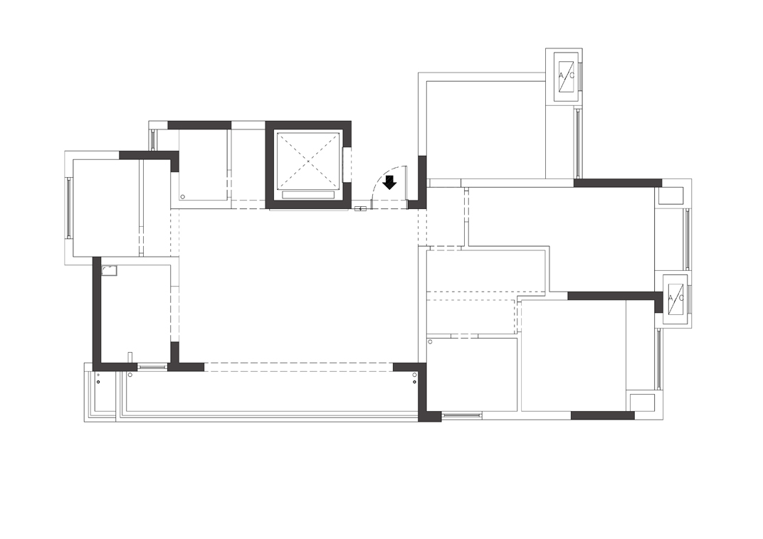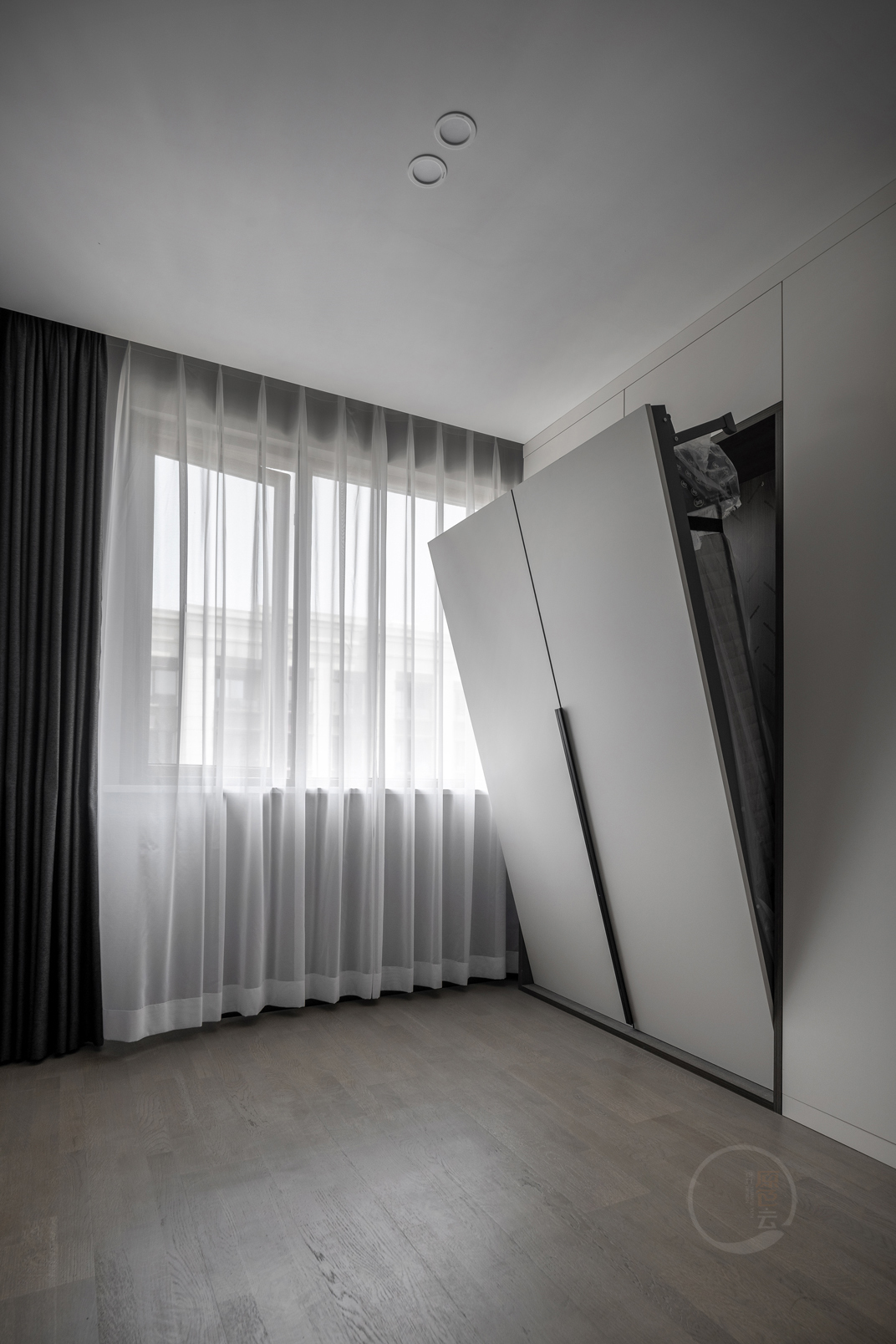 以墨菲床形式作为客卧居住功能,床收起后,可作为冥想或瑜伽空间