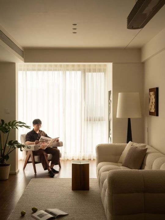 皮质与暗金框架组合的单人沙发,让空间多了一丝轻奢感受。