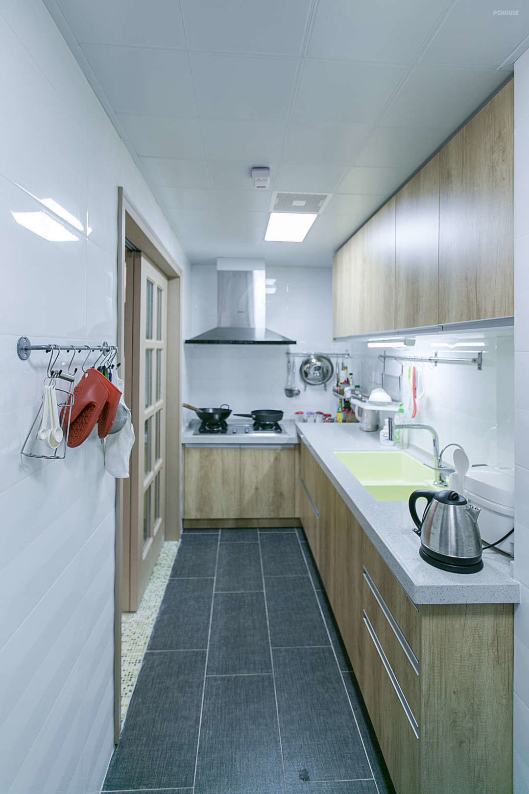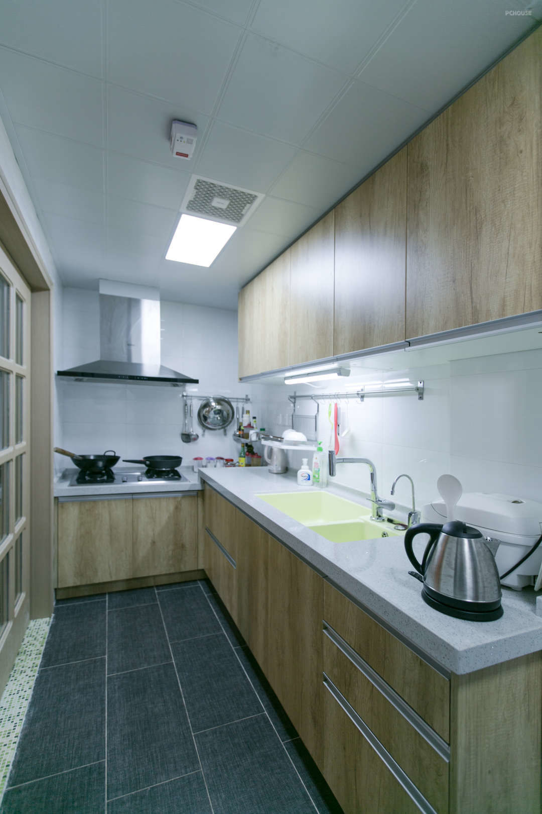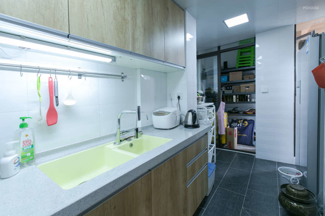 原来的厨房没有冰箱的位置,经过设计师的细心调整,最后放下了个双开门冰箱。
