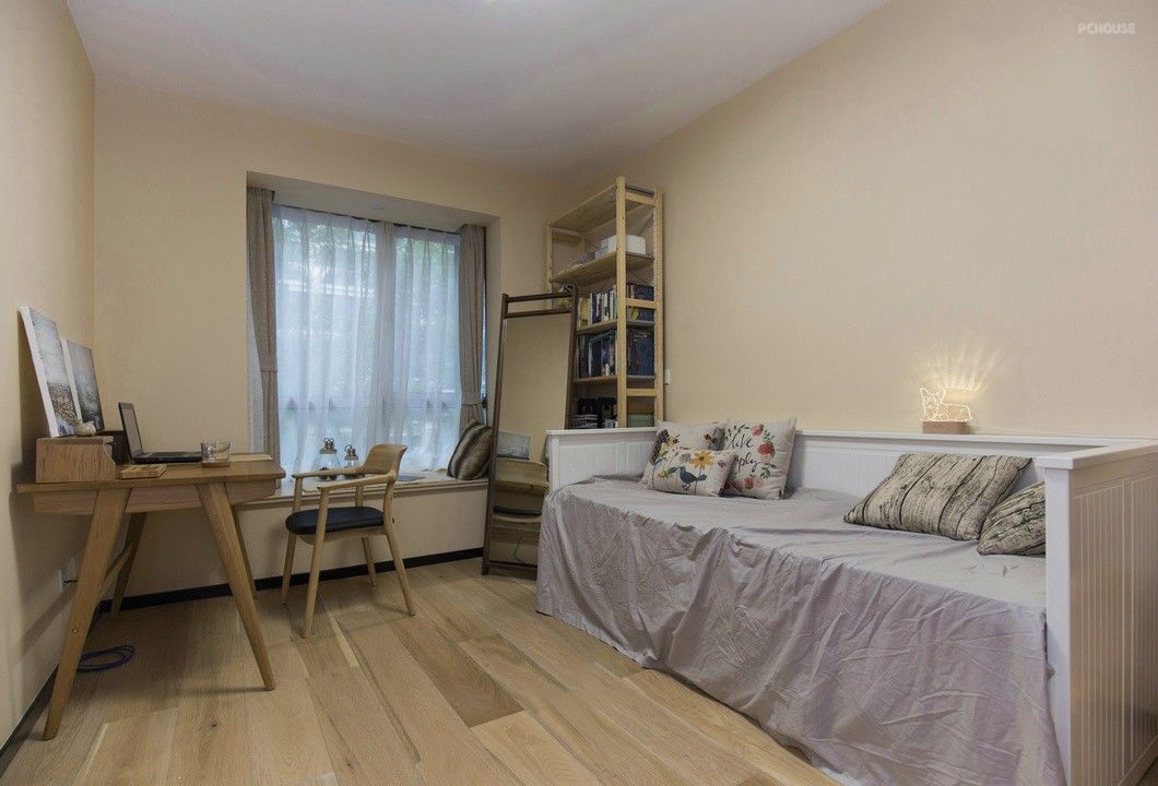 书房的设计,设置一个简易的榻,既可以在休息累了的时候稍作休息,也可以作为零时的客房