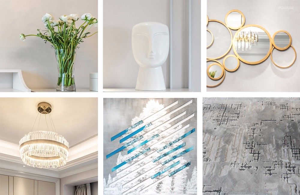摆件:没有繁复的造型,大都搭配简约的饰品,不喧宾夺主,留给空间呼吸的余地。
