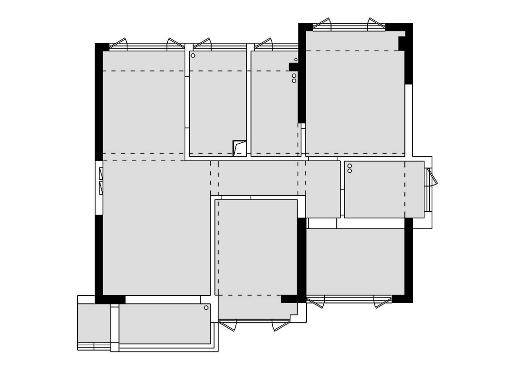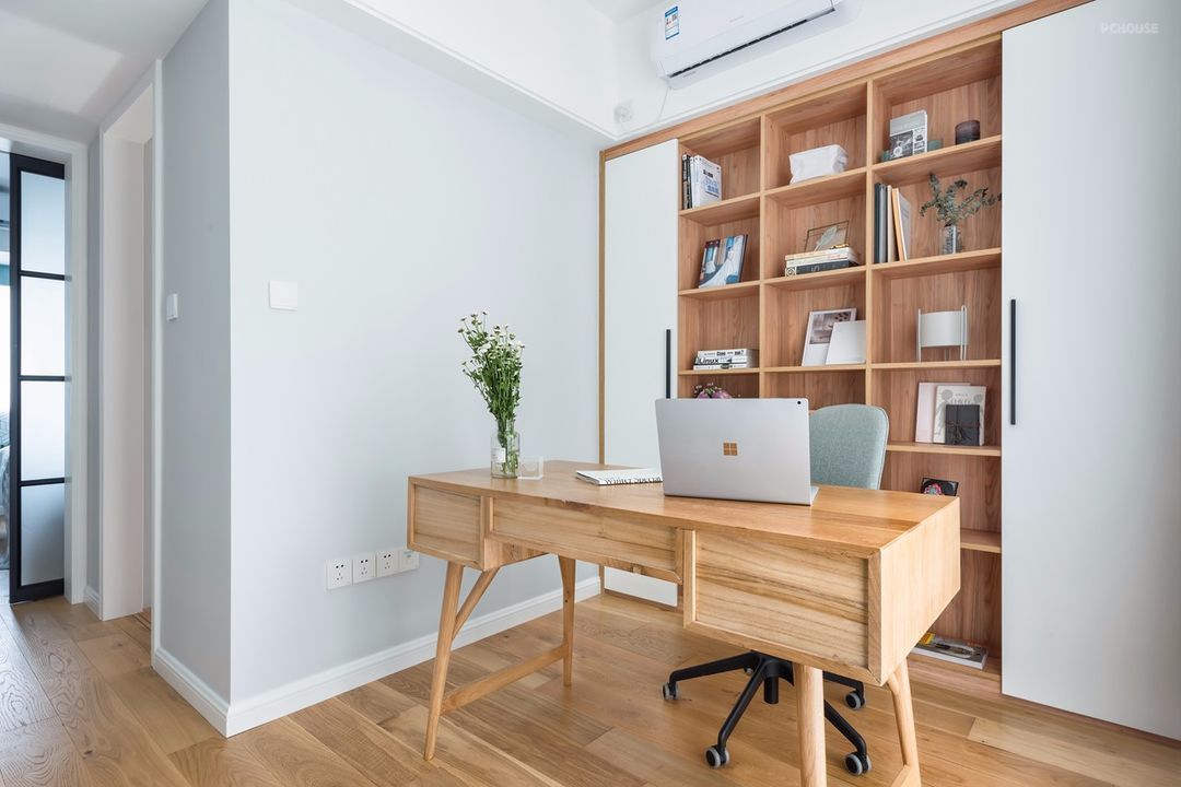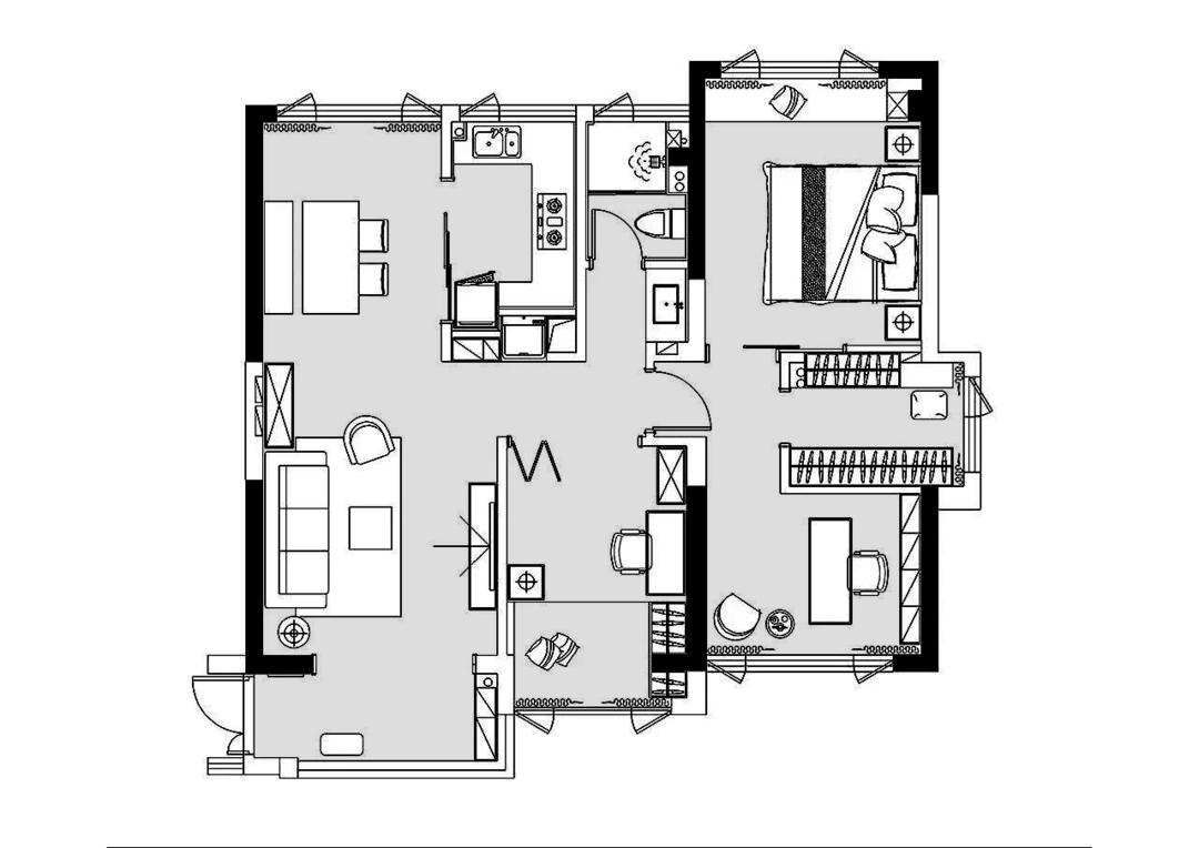 本案原始结构为三房两厅两卫,目前只有夫妻俩居住,父母偶尔来小住,两三年之内不会考虑小孩,偶尔会在家办公,喜欢阅读的氛围。根据以上要求,我们提出“以时间换空间”的设计理念,对户型做了一个改造,去掉主卫,改成衣帽间和化妆间,把主卧对面的房间改为书房,并且和主卧相连,主卧以推拉门的形式和书房分割,在小孩未出生之前作为书房,出生之后三五年内,书房可改为婴儿房,方便大人照看,等小孩大一点需要一个独立房间的时候又可以把客房改为小孩房。这样的平面布局即考虑了当下,也预见了未来...