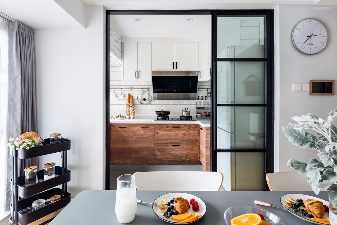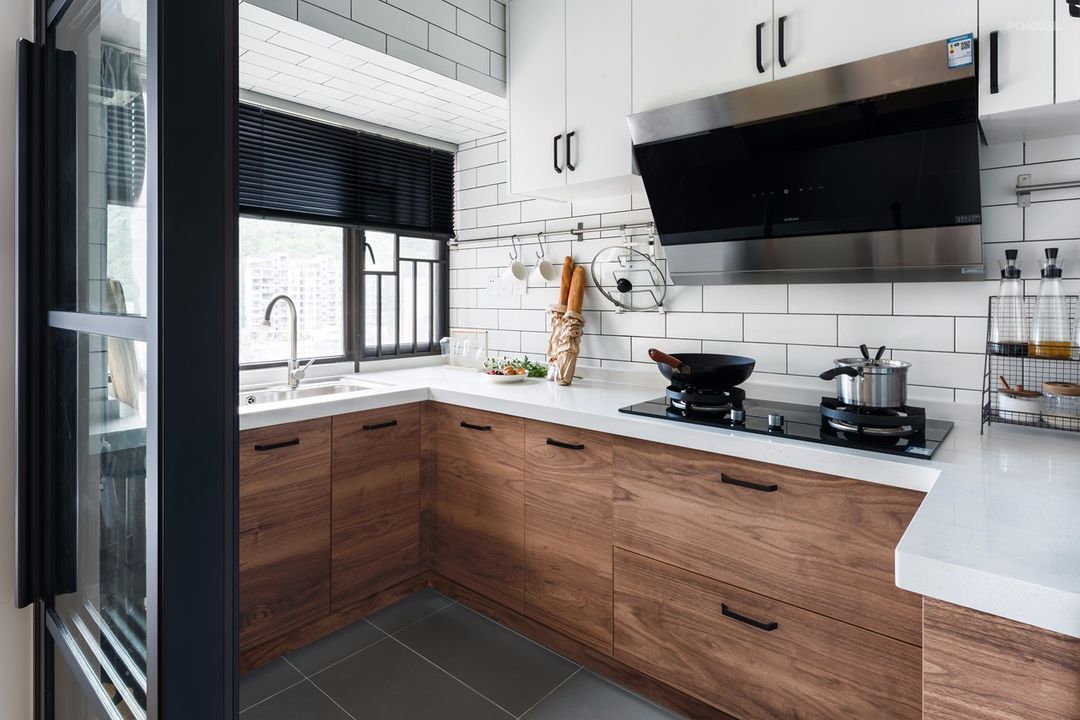 厨房墙面选用小白砖和木色橱柜搭配,一个精致有爱的厨房是家的心脏,茶、咖啡和享受亲手烹饪的美食都在这里实现,在厨房里制作一杯热饮,或者品尝刚出炉的甜点,都会让人在深感幸福和生活的美妙。
