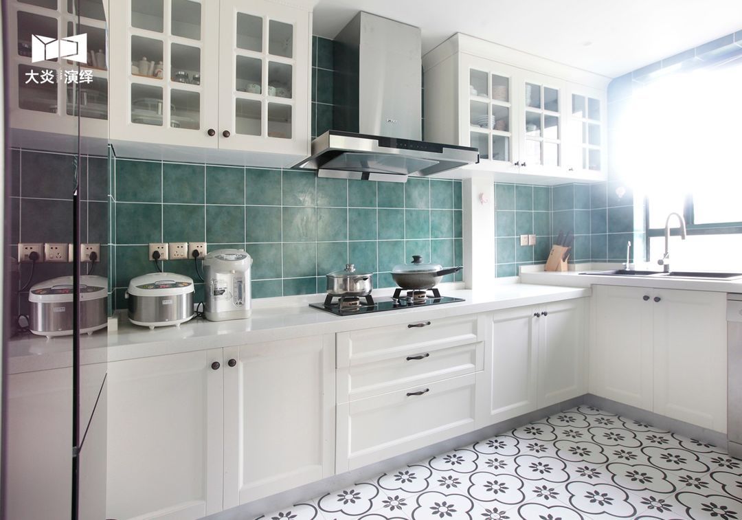 豆绿色的墙面,