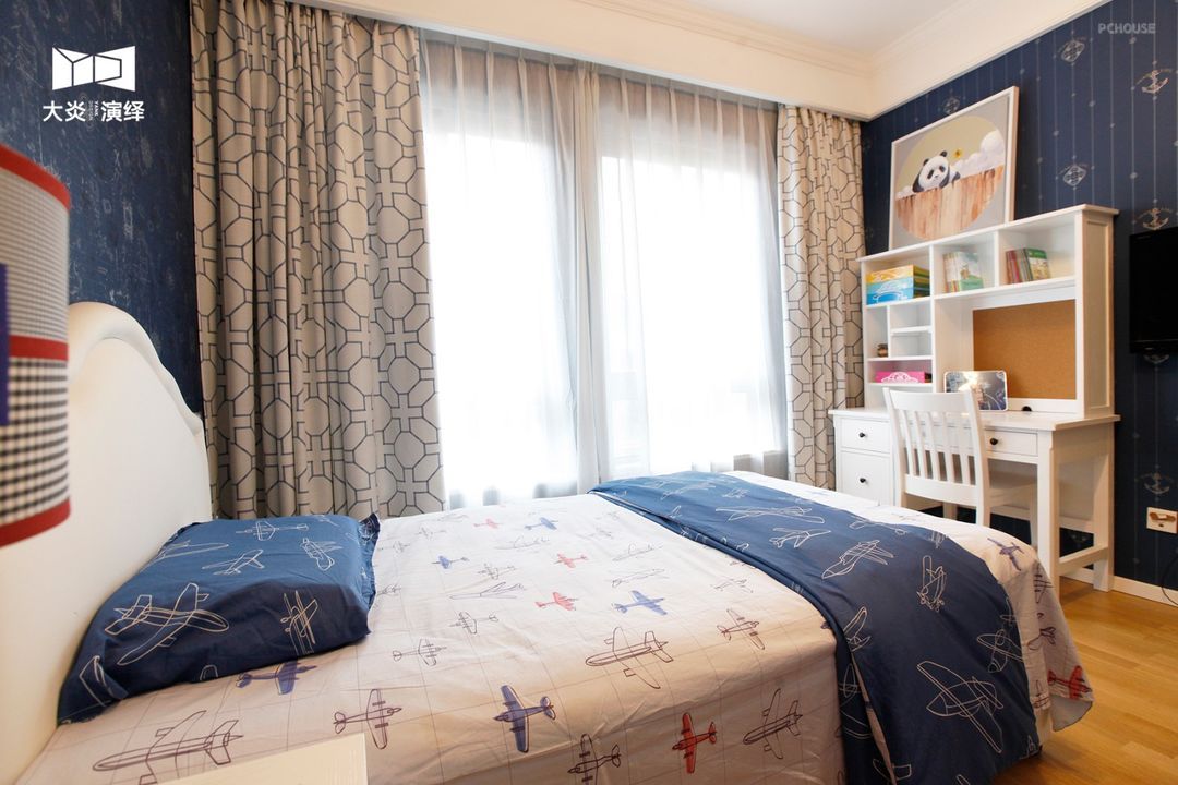 以蓝色、飞机图案为主题的儿童房,童趣十足,这里是朱sir小儿子的世界;