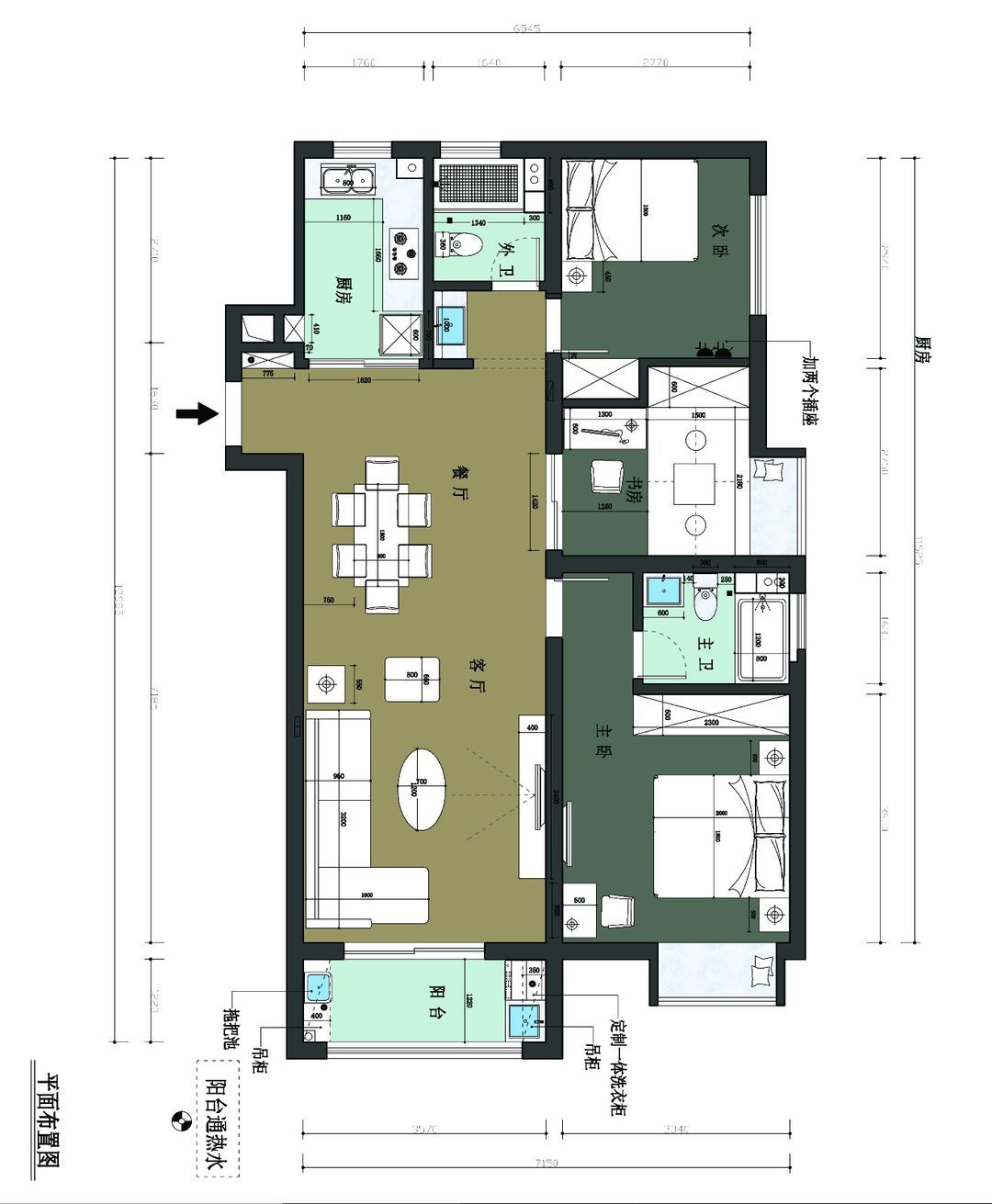 满足了书房客卧储物多种功能,卫生间干区利用矮墙进行区域的划分实用而又灵动。客厅电视背景组合柜的设置