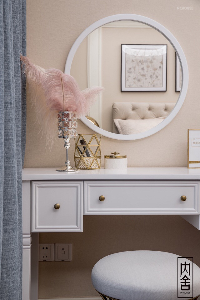 粉色的装饰,满足了女主人的少女心,多了一丝俏皮和活泼,将这块空间衬得灵活起来。