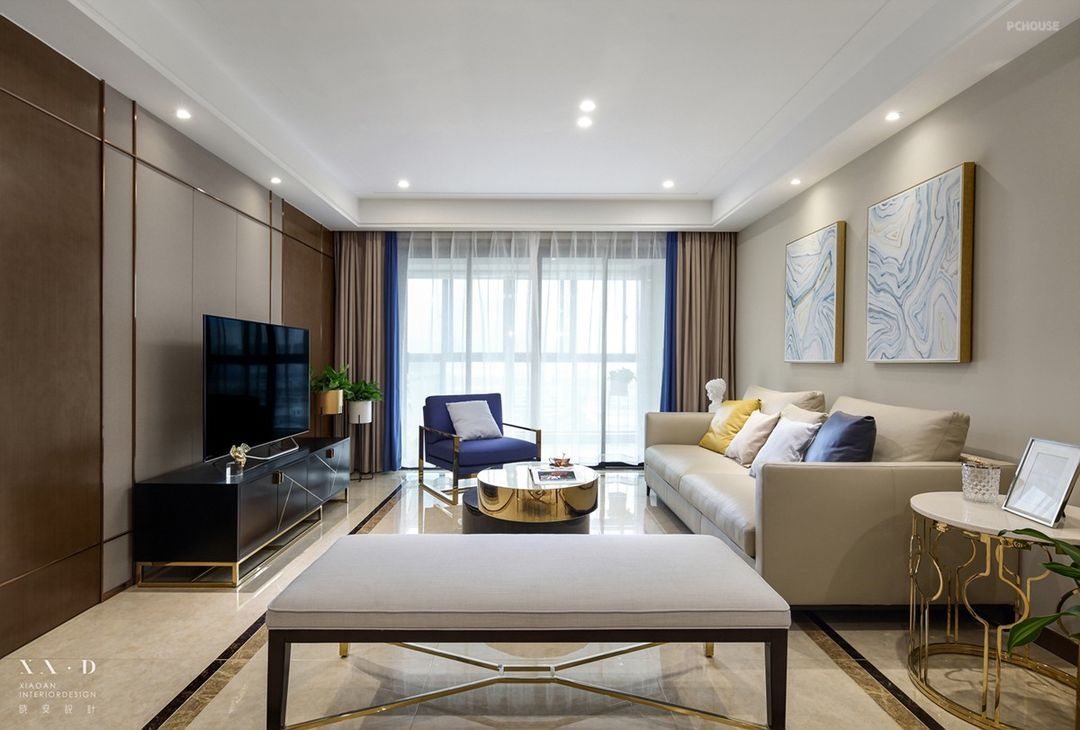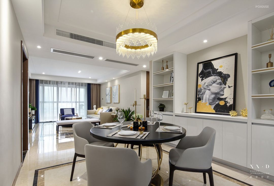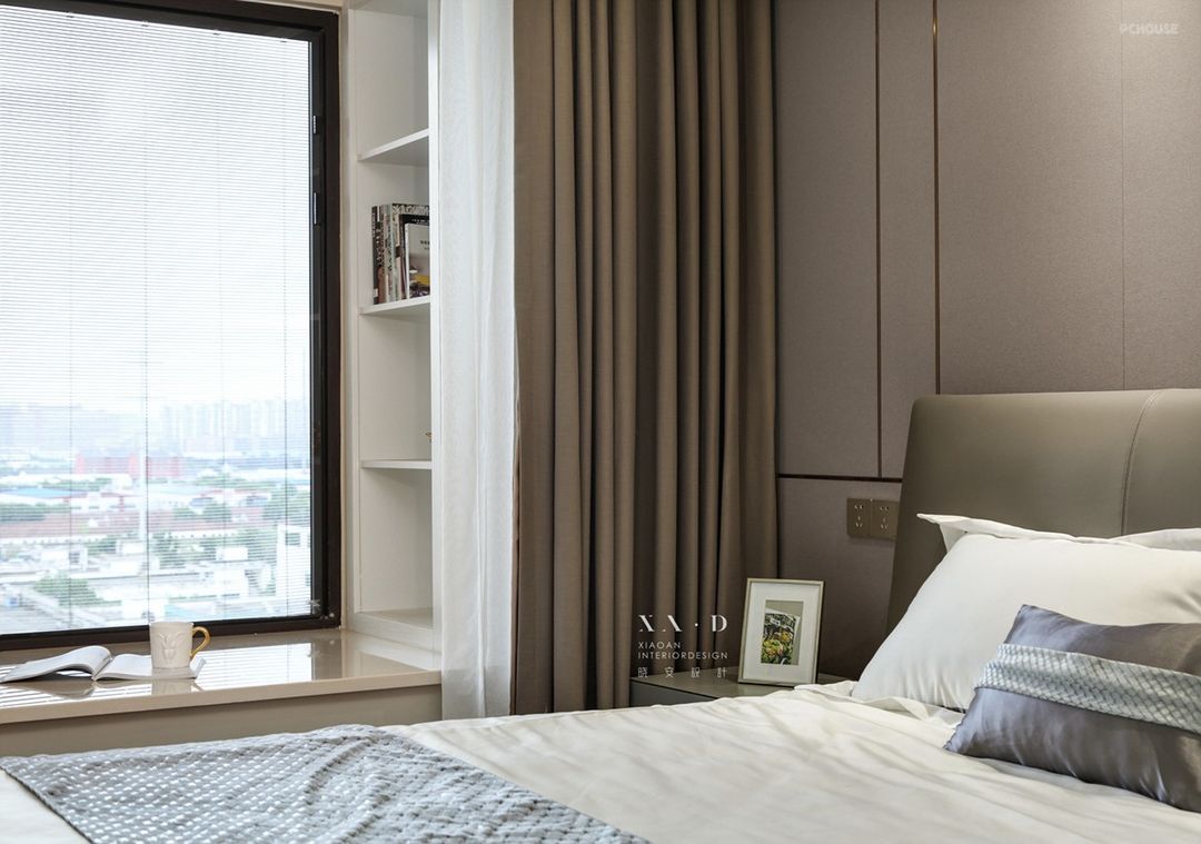 在满足功能性的前提下,后期软装上我们选择以定制为主。从定制初期的图纸确认,到面料、皮料的选择。再到工厂打样,无时无刻不在挑战着团队之间的合作与专业性。这套作品能顺利落地,要感谢业主对我们的信任与支持。很开心,她想要的我们刚好可以做到。团队不断地努力进步,不仅仅是为了提升自己,更重要的是在业主审美不断提高的情况下,我们可以引领他们找到更好的家。