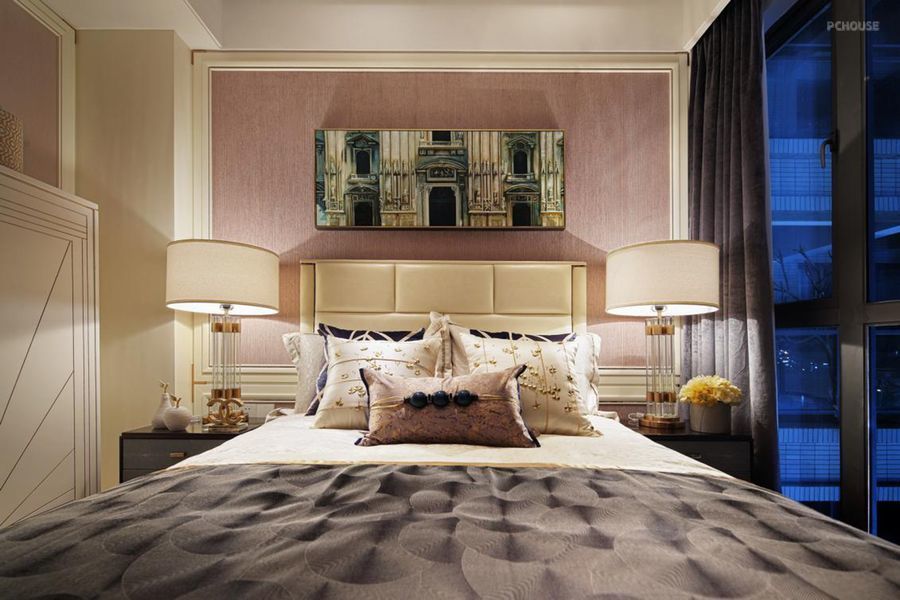 布艺沙发的温柔,金属质感的炫亮,色彩与材质的碰撞,凸显出一室浪漫。