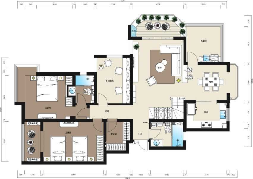 整个客餐厅户型通透,简洁明快。