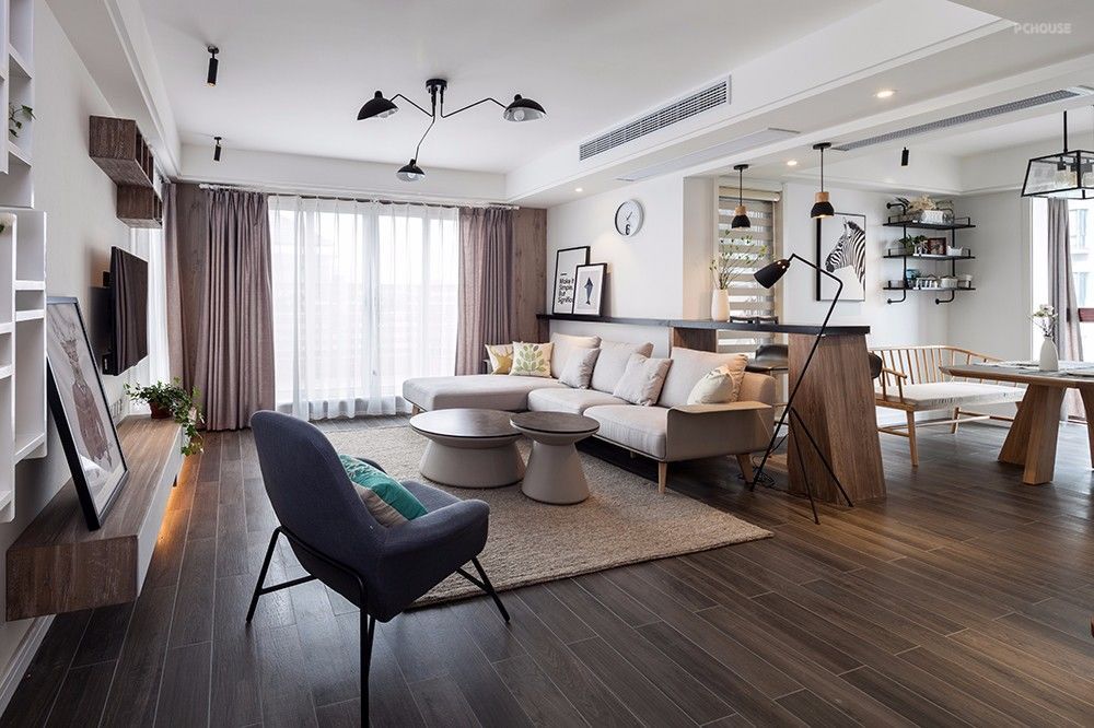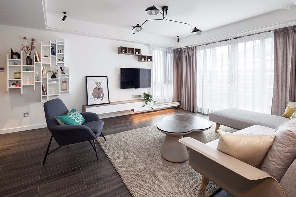 北欧风的客厅,拥有大大的落地窗,最大限度引入自然光。