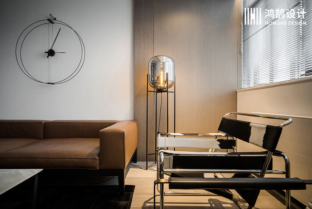 墙上的挂钟是业主非常喜爱的,来自一个西班牙小众品牌,网络代购而来,7000多元,可以说有点小贵了。当时工人来安装时,一听价格,开玩笑说都不敢安装了。胡桃木和玻璃钢材质和谐统一,流畅的线条感,让墙壁既不单调又保持了简洁。在我们那么多装修案例的经验来看,其实每个家中总有那么一两件软装是看似不重要,然而为了让整个家提升档次,还是会忍痛买了的,有和没有会有天壤之别,没有绝对的强求,只是一种人生品位的需求体现。