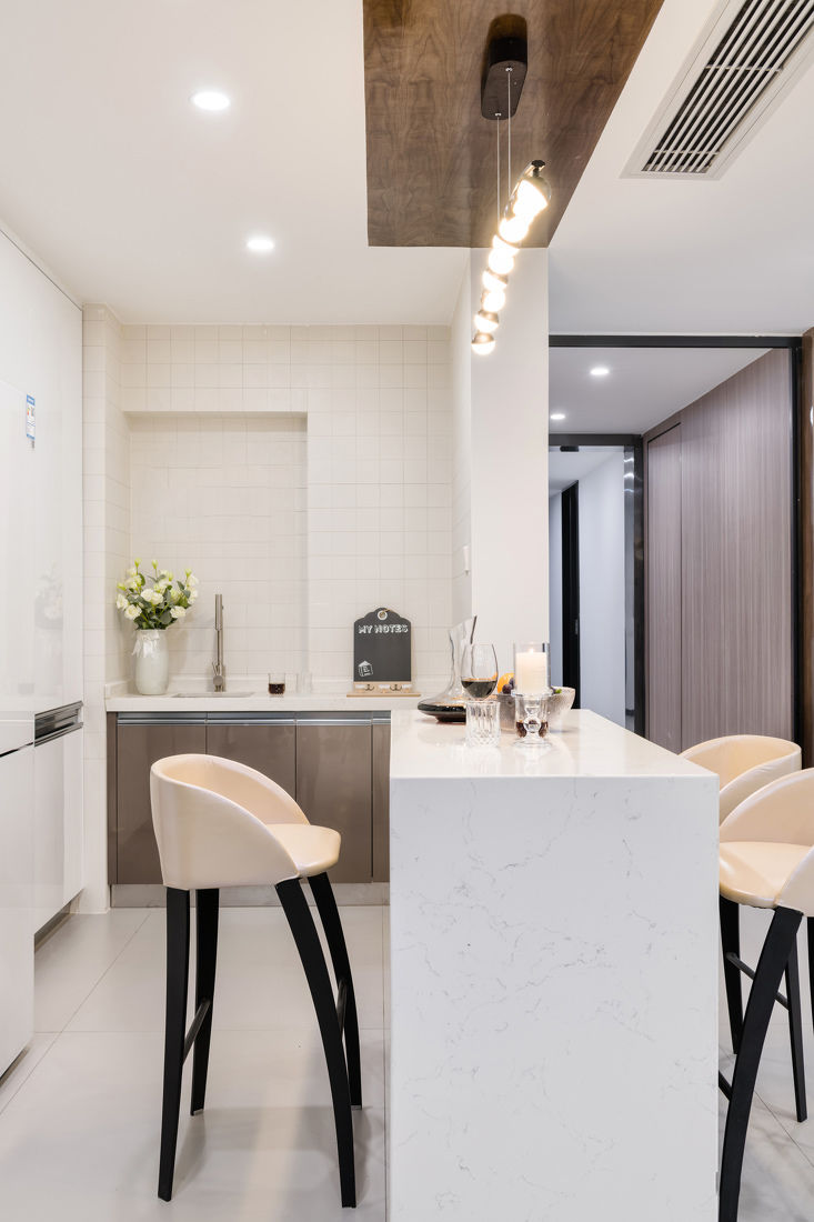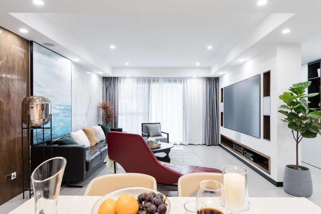业主的要求很明确——喜欢现代风格的科技感,又不能因为科技感而充斥着冰冷感,喜欢色彩,不能太单调。设计师经过一周的头脑风暴,根据业主的要求,设计出了一个囊括自然与智能的家。