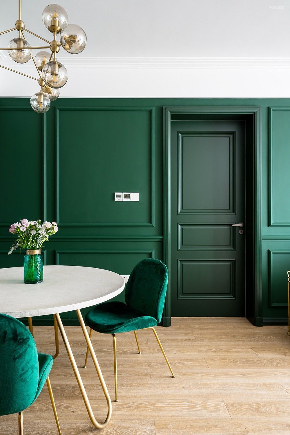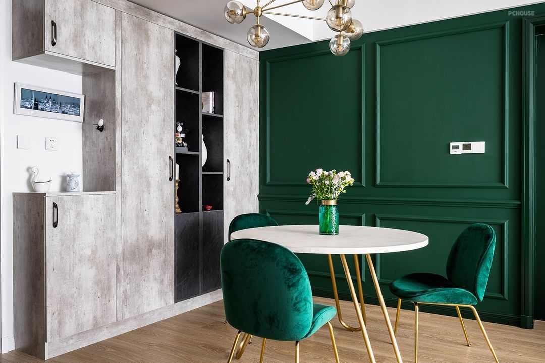 所以,设计师选用深邃而典雅的祖母绿来唤醒人生最原始的悸动,它不仅连接着自然,也在梦和遐想中连接着古老的森林,让业主沉浸在一种平静但也能充分发挥想象力的生活方式之中。