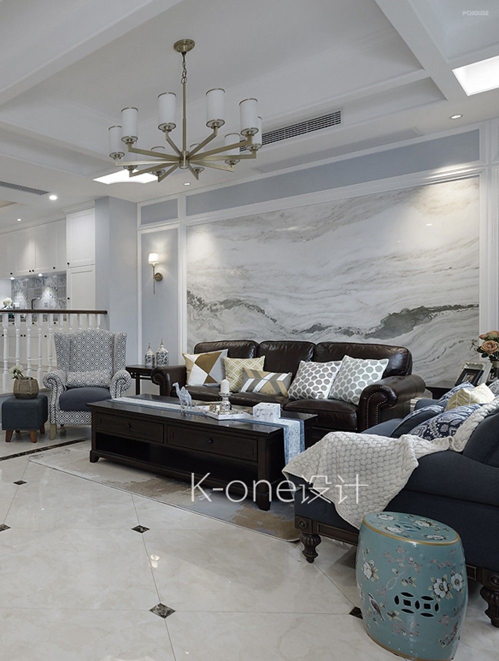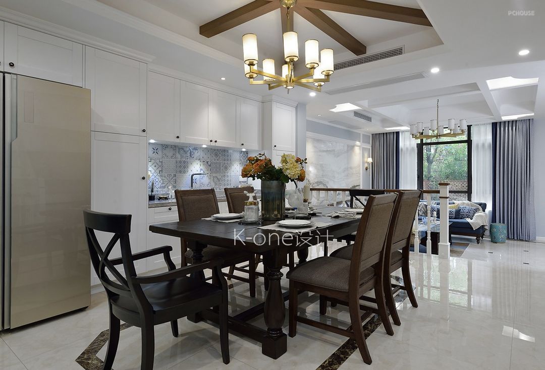 整体色调上偏沉稳,简约的美式线条,搭配舒适的沙发,在家具及软装上,掺进了一些活泼跳跃的色彩,在色彩上不会显得太沉闷。