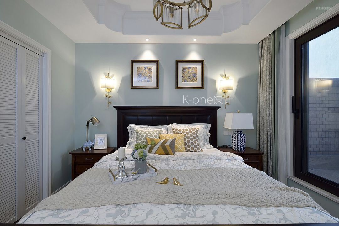 淡雅的绿色,体现主人的格调与品位,精致的家具和床品是主人用心去生活的象征。