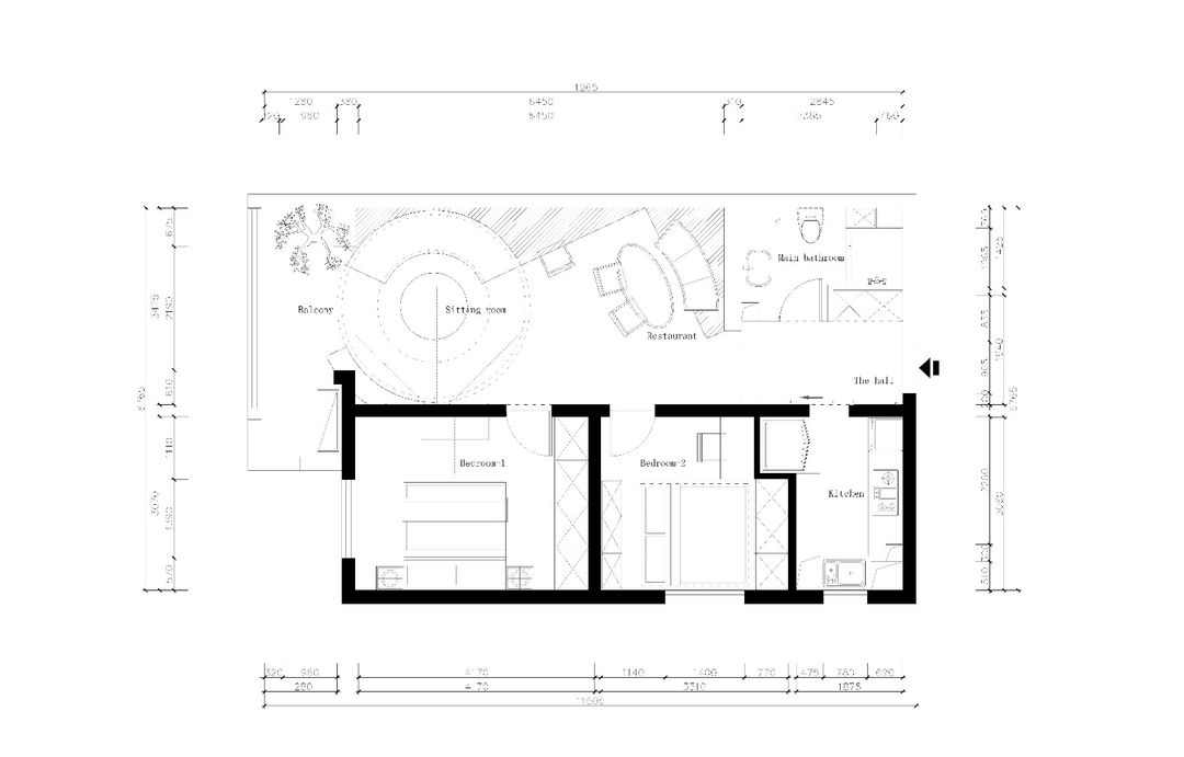 当然,这面墙壁其实不只这么简单,其背后有两间卧室,通过隐形门很好地隐藏起来,两块线框的长方形就是两扇门。