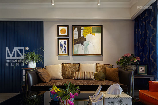 客餐厅设计一体式设计让视觉空间更为通透,设计师如手执画笔,对每个空间进行了不同的色系处理,由入户、餐厅至客厅,一步一景。客厅的抽象画,则成全屋色调呼应的伏笔。