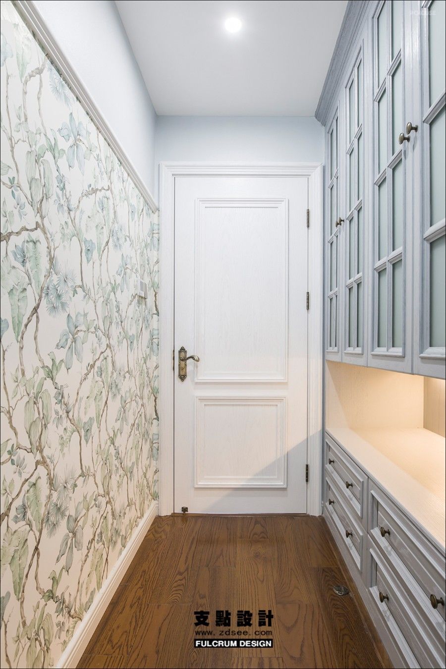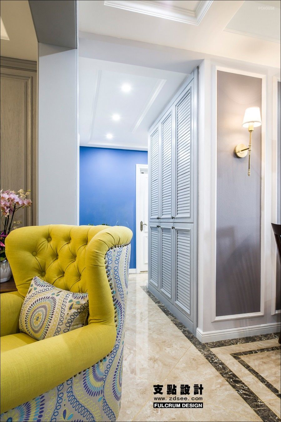 灰色与蓝色的叠加碰撞,产生如悠山薄雾的朦胧美感,似真若幻,又带着种仙气凌然的别致优雅,这就是色彩流露出的魅力。而运用到家居之中让人不禁的放下防备,只想沉溺在这一室繁华之中。